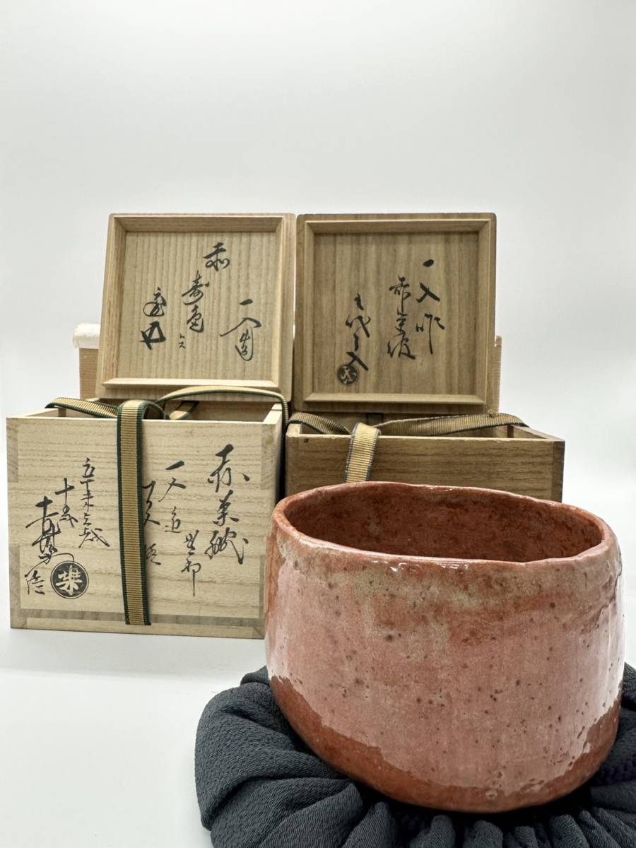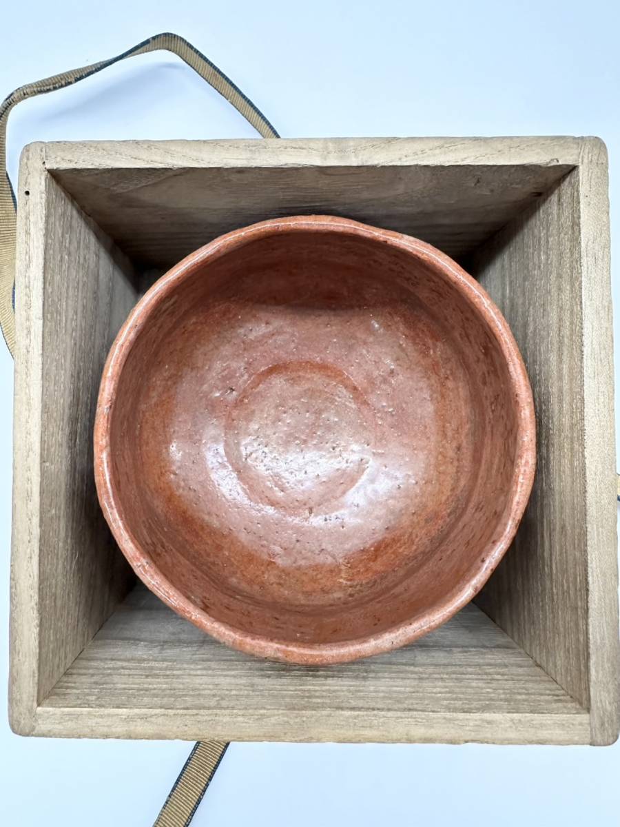 ●四代一入作 赤楽茶碗 鵬雲斎箱書 了入極 楽吉左衛門識 銘「寿色」トス
