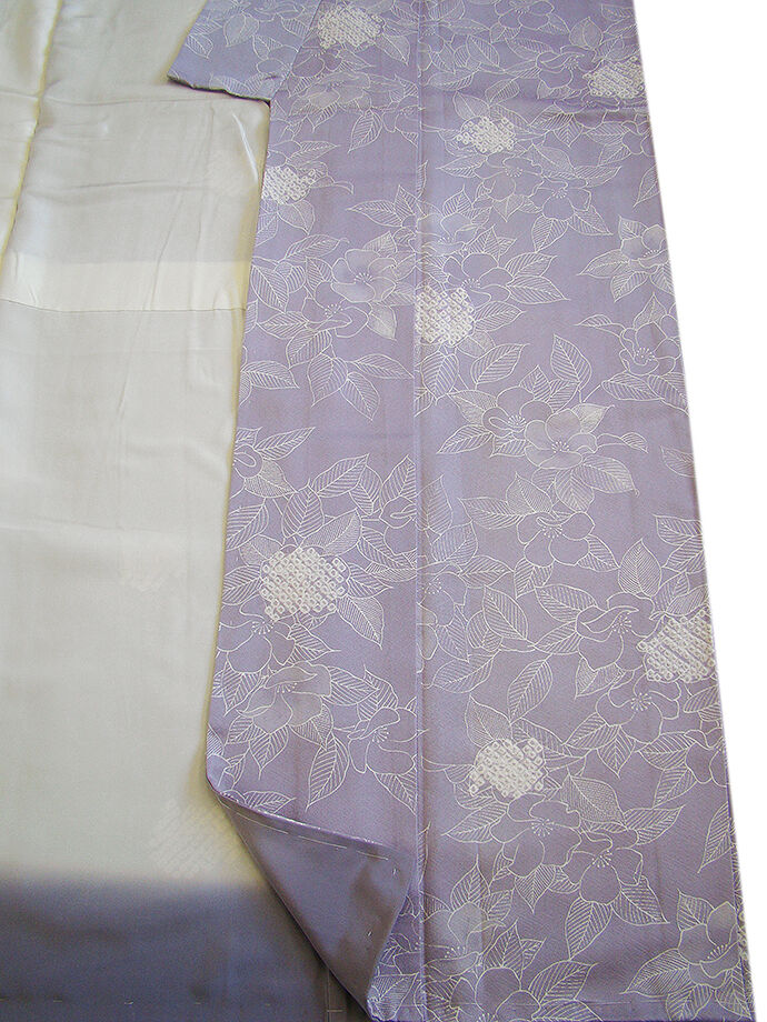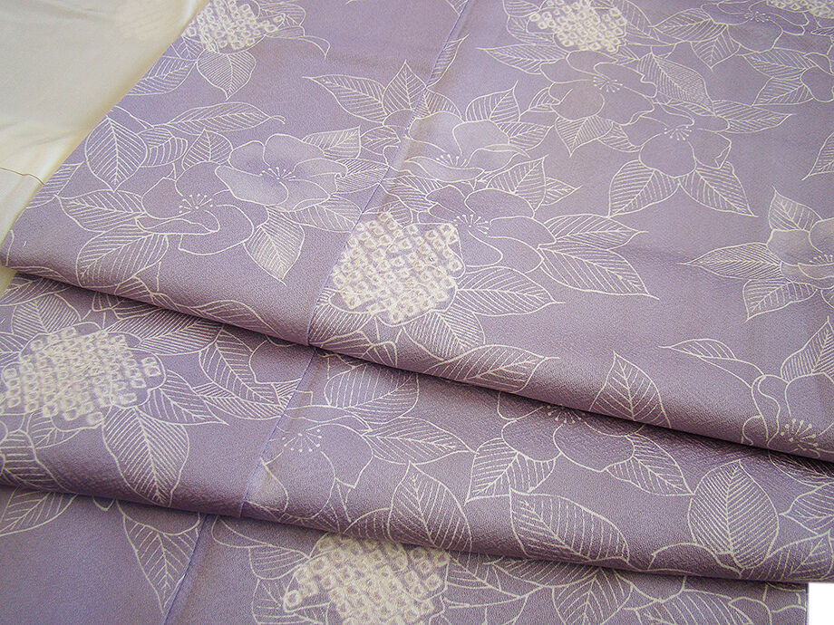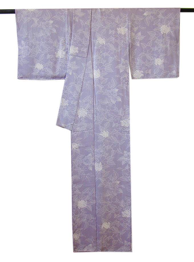 | 商品説明 | こちらのお品は「袷」ですので10月から5月までお召頂ければと思います。 しなやかで滑らかな手触りの着心地良い重厚い感ある紋意匠地の生地、 藤色地に地模様入りに白色の花草柄の染柄に鹿の子絞り入り、 八掛は共色(正絹)、幅広い年代の方にお召頂けます。 |