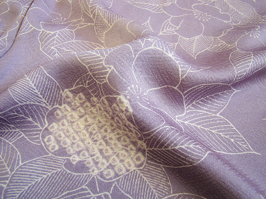 きものしらゆり 身丈155cm 裄64cm 10~5月 紋意匠地 鹿の子絞り 藤色 小紋 正絹 身長150cm~156cmの方に最適 C988 收藏