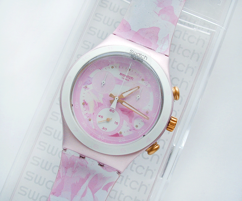入手困難品★アイロニー クロノグラフ★Rose Jungle★SWATCH★電池交換済み★時計本体未使用★ベルト表面にベタつき汚れ★オメガ好きも見て 收藏