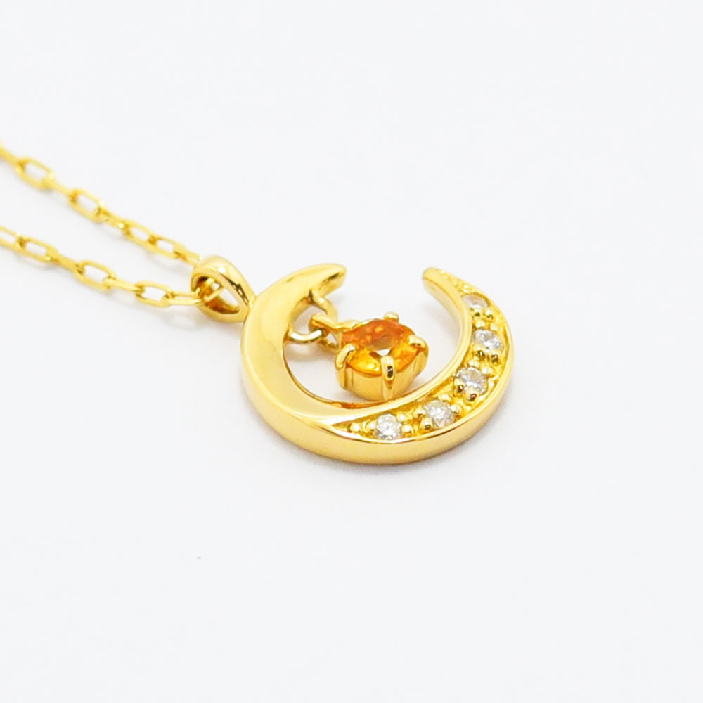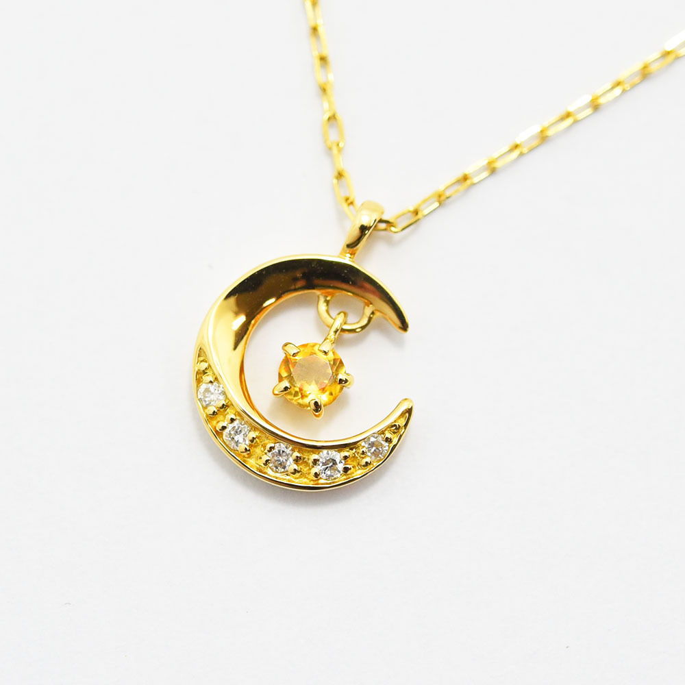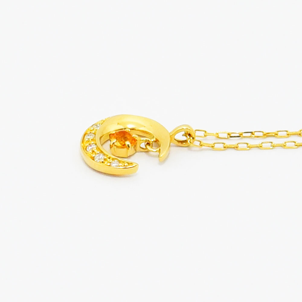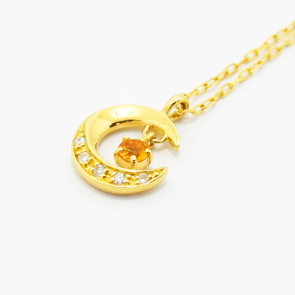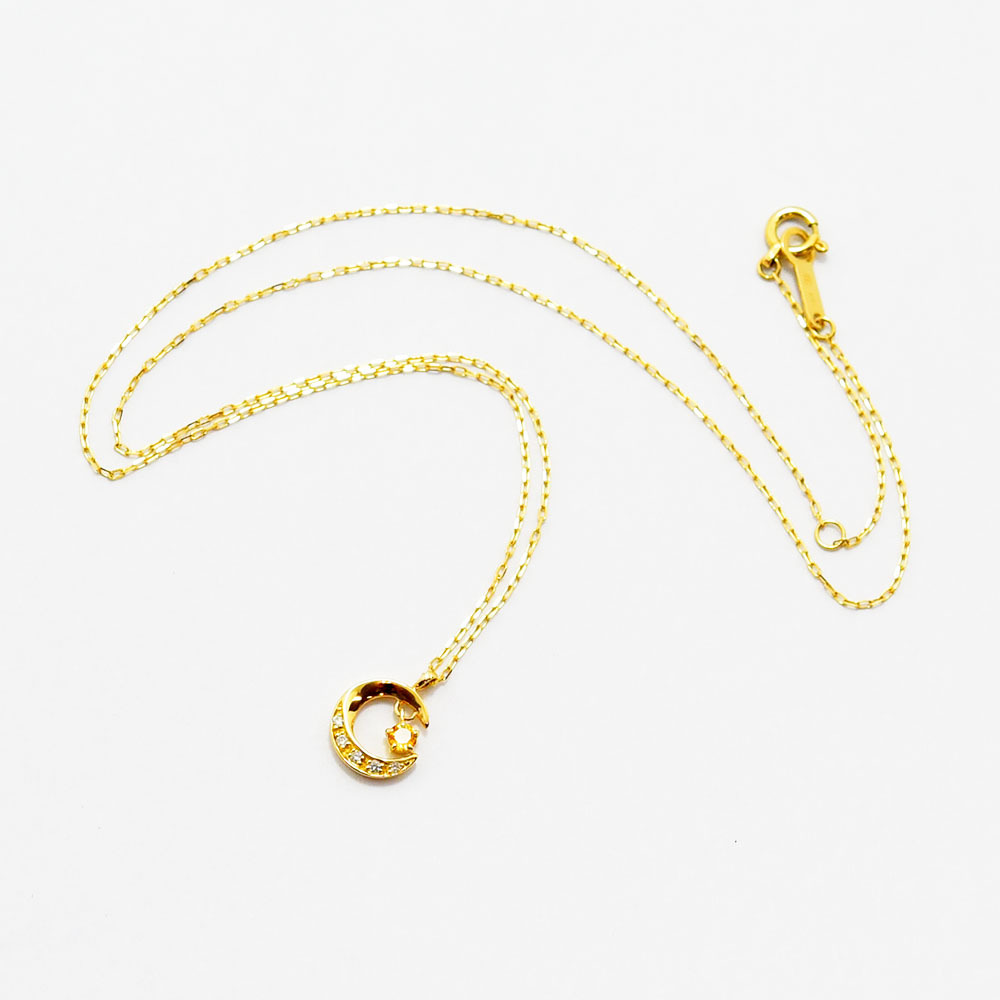 ヨンドシー ネックレス 4℃ ペンダント 月 ムーン ダイヤモンド シトリン K18 750 新品仕上げ 中古 收藏