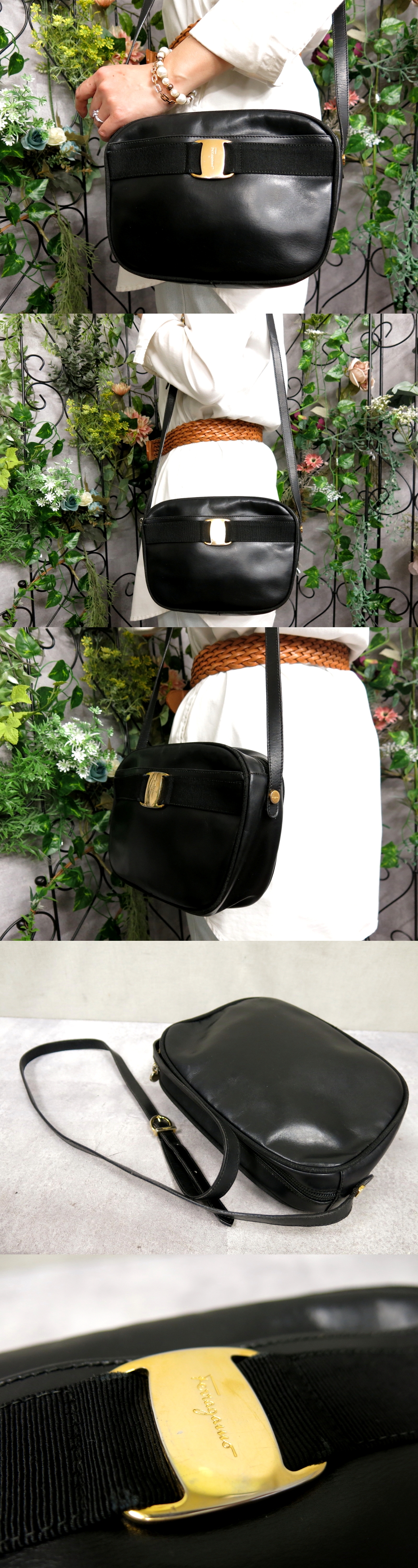 ●超美品●Salvatore Ferragamo フェラガモ●ヴァラ●カーフ レザー 本革●ショルダー バッグ●黒●ゴールド金具●肩掛け●かばん●Js56835 收藏