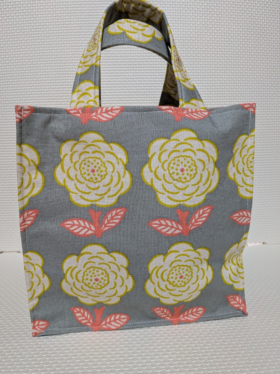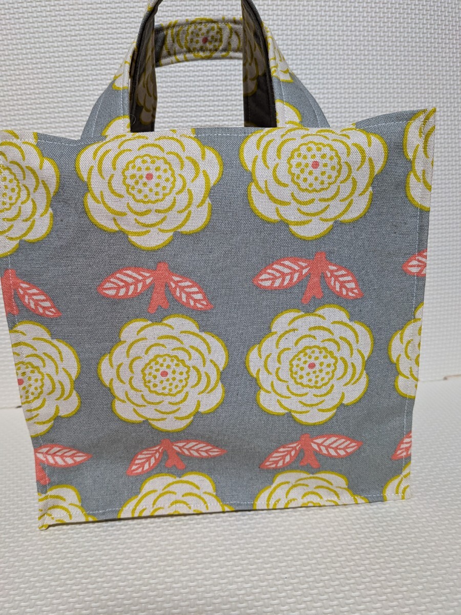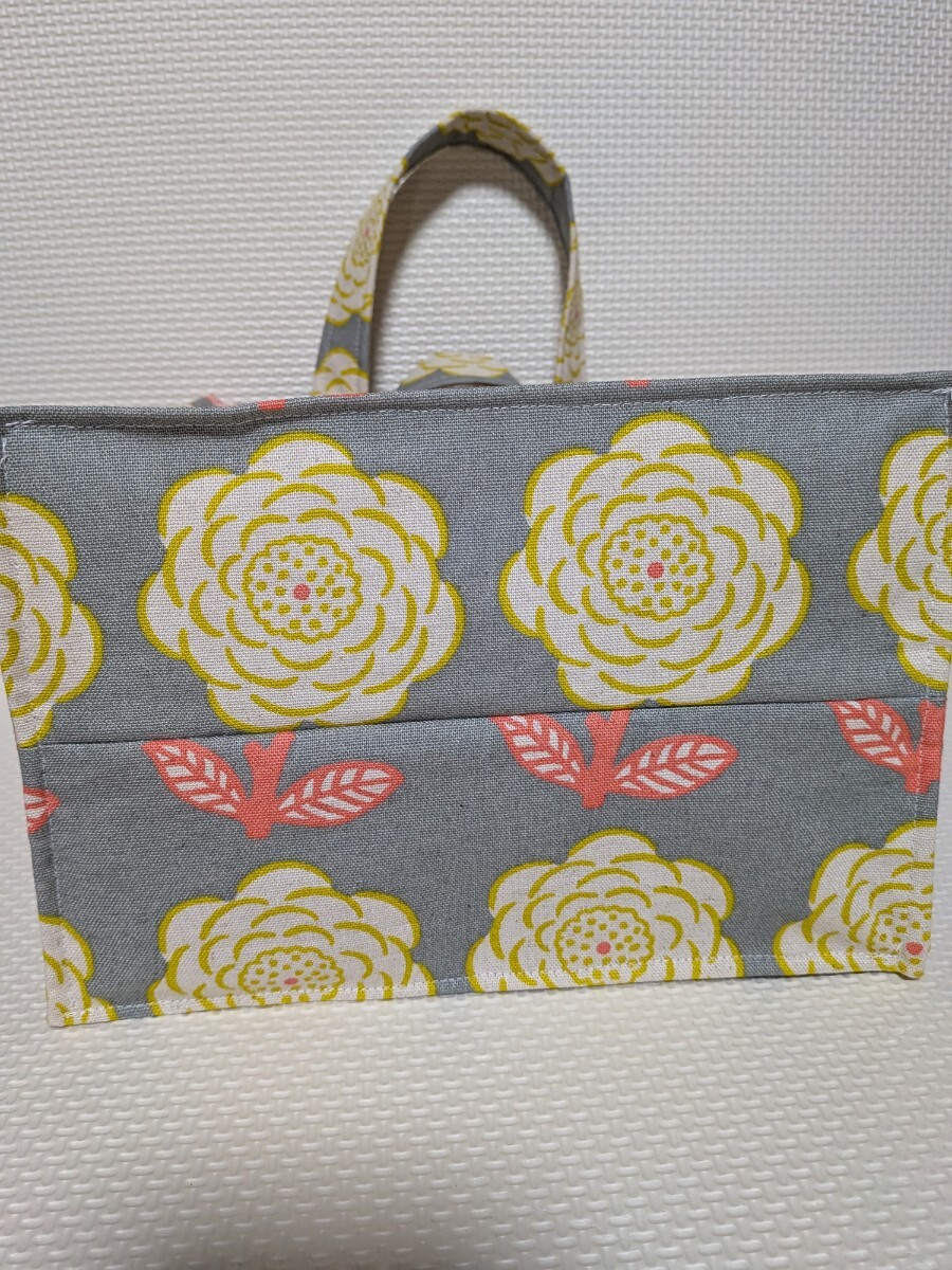 スクエアトートバック ハンドメイド お弁当バックなど… グレーに黄色のお花 收藏