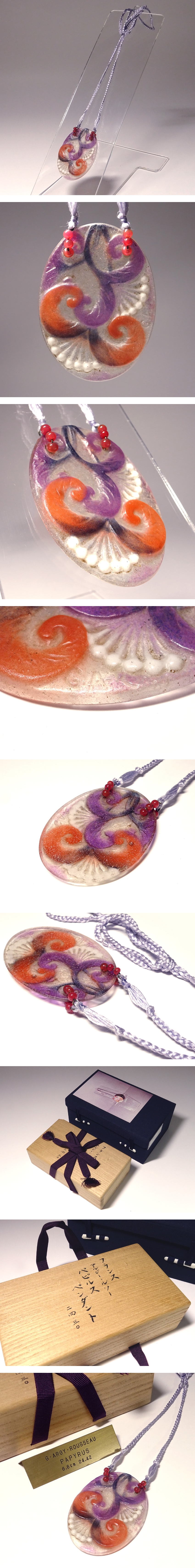 慶應◆1920年代頃 フランス【Gabriel Argy-Rousseau ガブリエル・アルジー=ルソー】作 パート・ド・ヴェール パピルス文ペンダント 桐誂箱 收藏