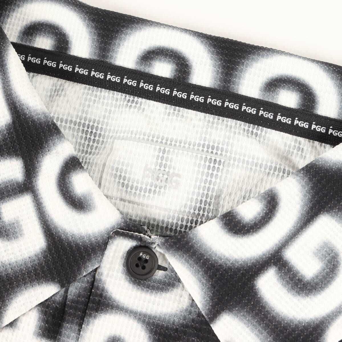 【美品】PGG ピージージー ポロシャツ サイズ:5 / 24SS リピート ロゴ 総柄 ストレッチ ナイロン ポロシャツ Nyドビーストレッチ 半袖 收藏