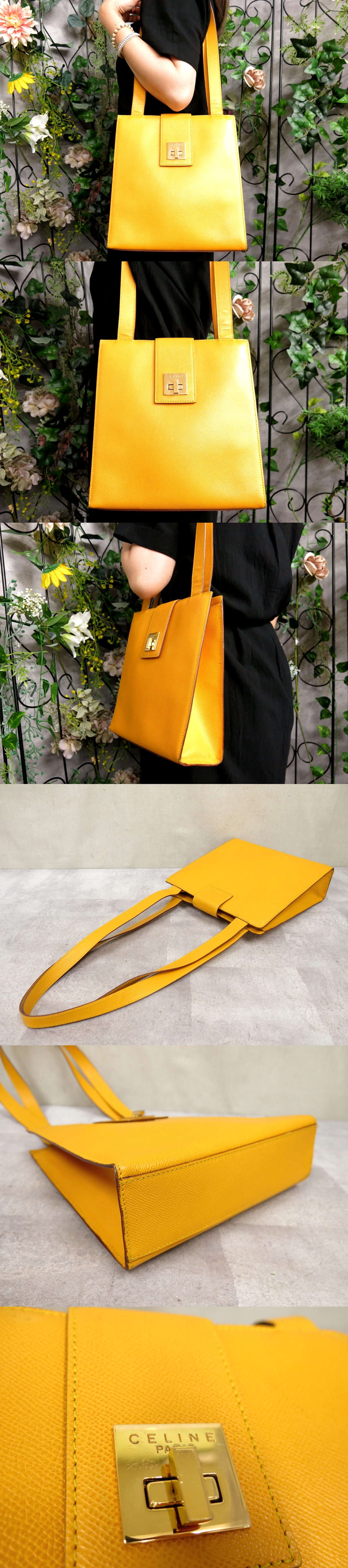 ●超美品●CELINE セリーヌ●ターンロック●カーフ レザー 本革●ショルダー バッグ●ゴールデンイエロー●ゴールド金具●肩掛け●Js57577 收藏