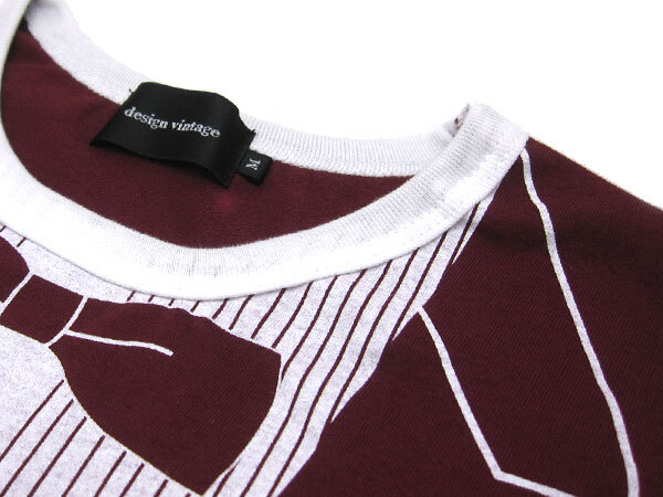 だまし絵 タキシード L/S T-shirt WINE RED S/ロンt長袖長そで騙し絵tシャツトロンプルイユビンテージアメカジフェイクおもしろ蝶ネクタイ 收藏