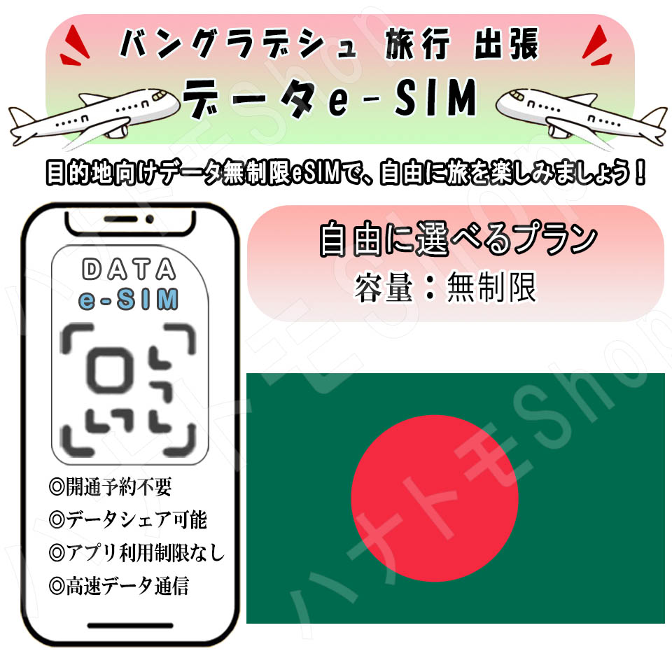 バングラデシュ esim 無制限 simカード 4G LTE 5G データ通信 テザリング可能 海外旅行 短期渡航 旅行 短期 出張 收藏