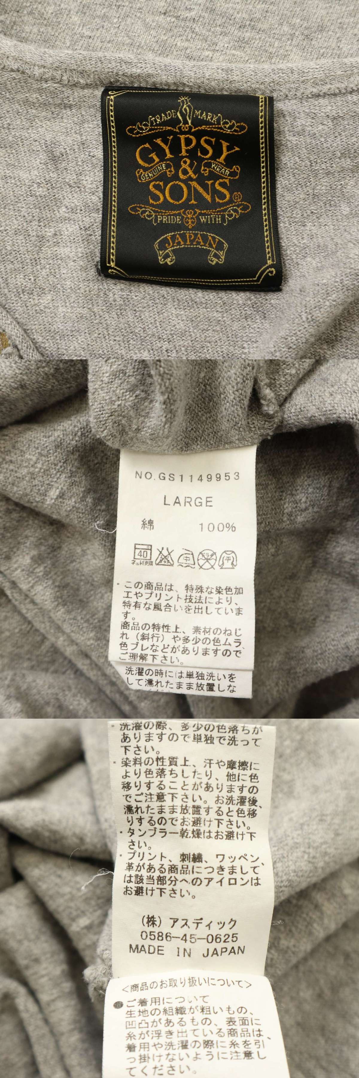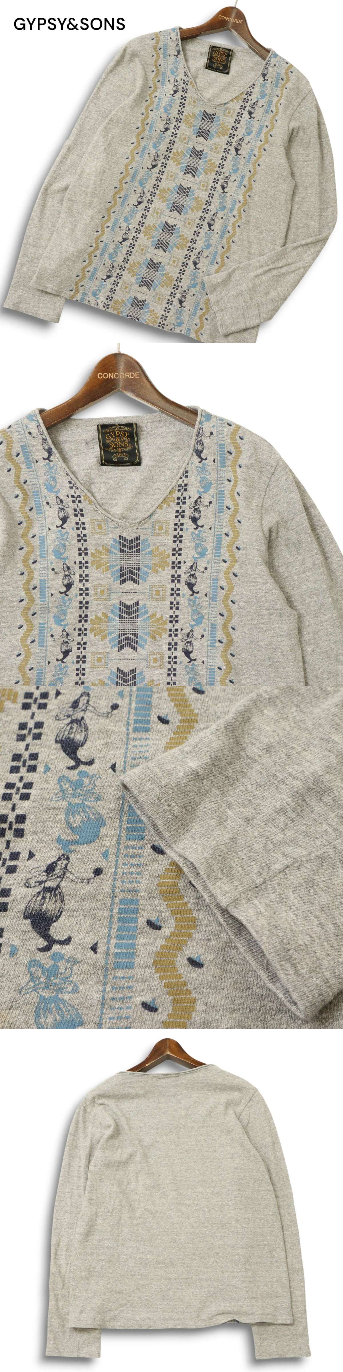 GYPSY&SONS ジプシーアンドサンズ 幾何学模様 フラガール★ 長袖 Vネック カットソー ロンTシャツ Sz.L メンズ 灰 日本製 收藏