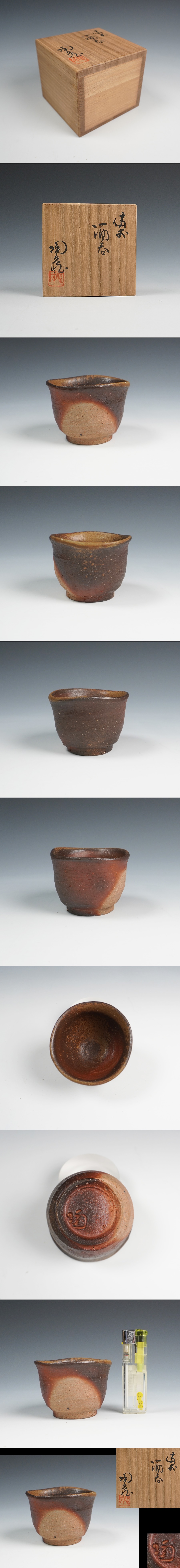小西陶蔵 作 備前酒呑 ぐいのみ 盃 共箱 酒器 保証品◆12873YA 收藏