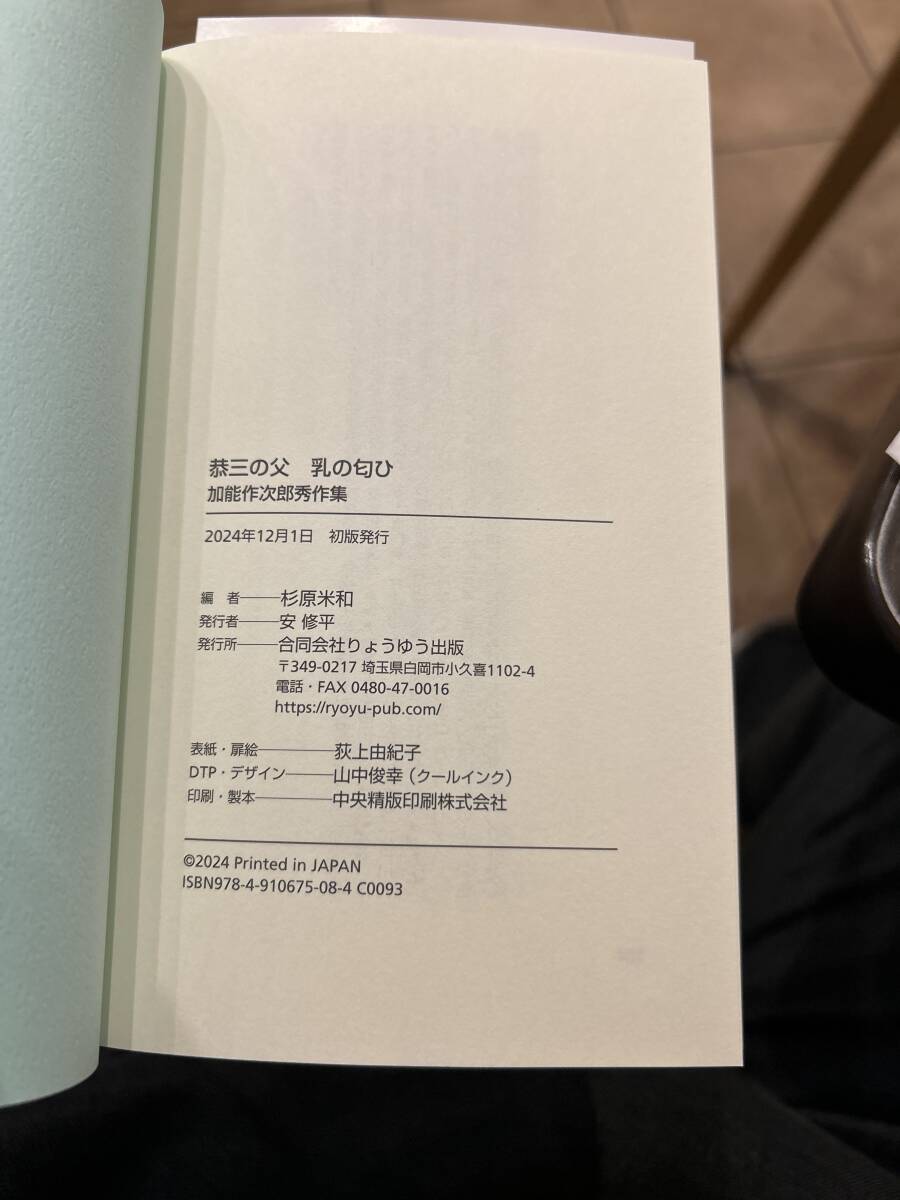 恭三の父 乳の匂ひ 加能作次郎秀作集 りょうゆう出版 美品 收藏