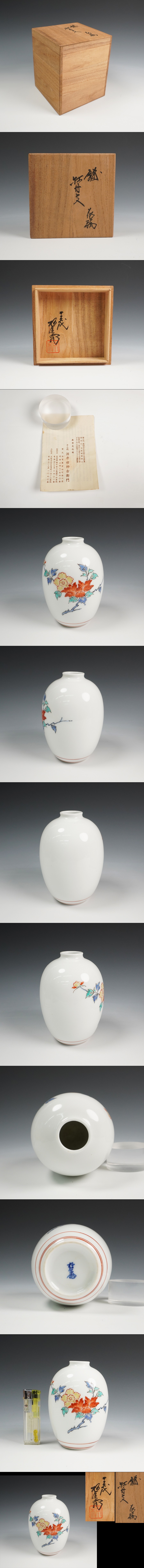 | 十三代 酒井田柿右衛門 作 錦 牡丹文 花瓶 共箱 花器 保証品 | ||||