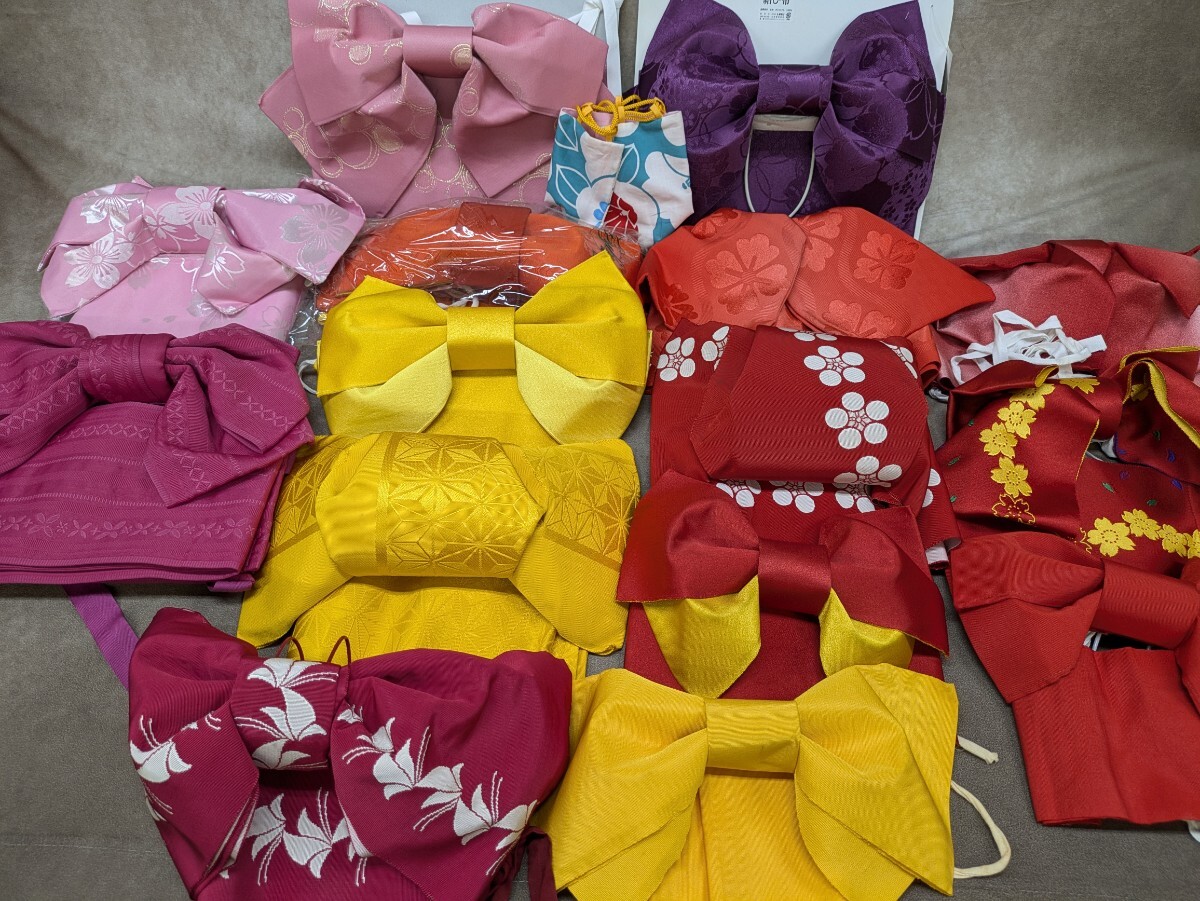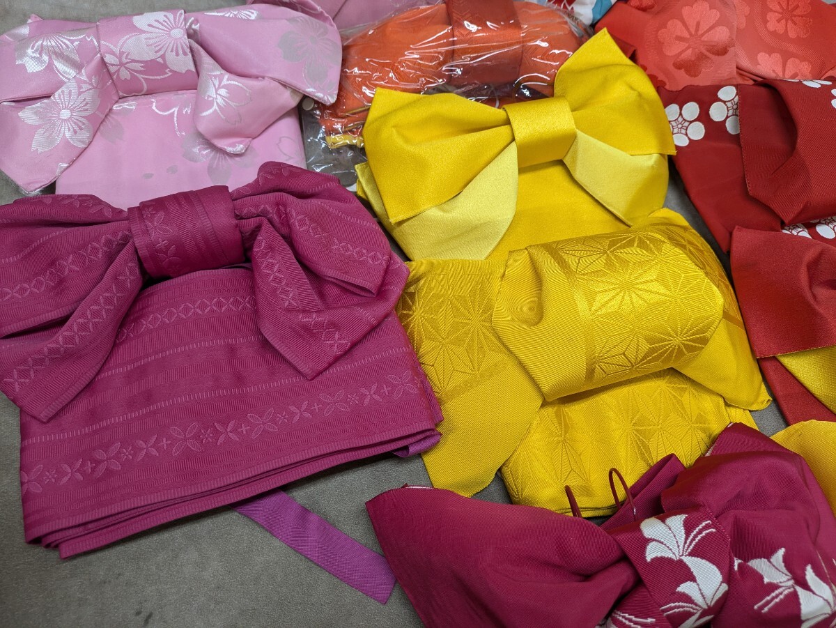 浴衣帯 サイズ色々 まとめ売り 未使用品あり 大量 作り帯 簡単帯 結び帯 二部式帯 浴衣 着物 着付け小物 和柄 花柄 麻の葉 レトロ 中古品 收藏