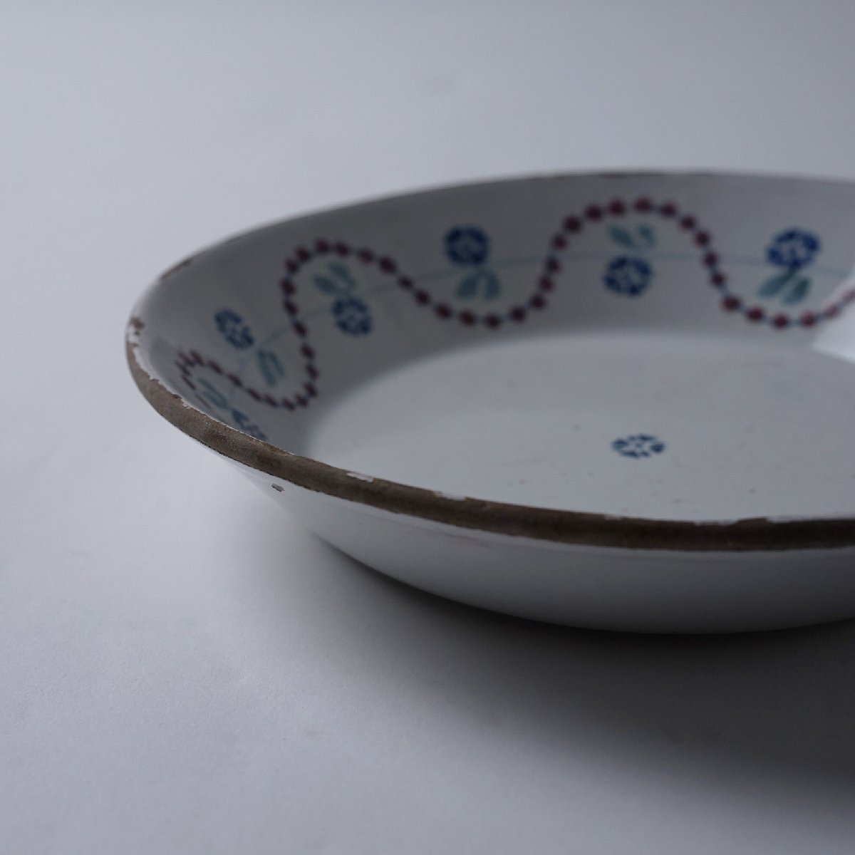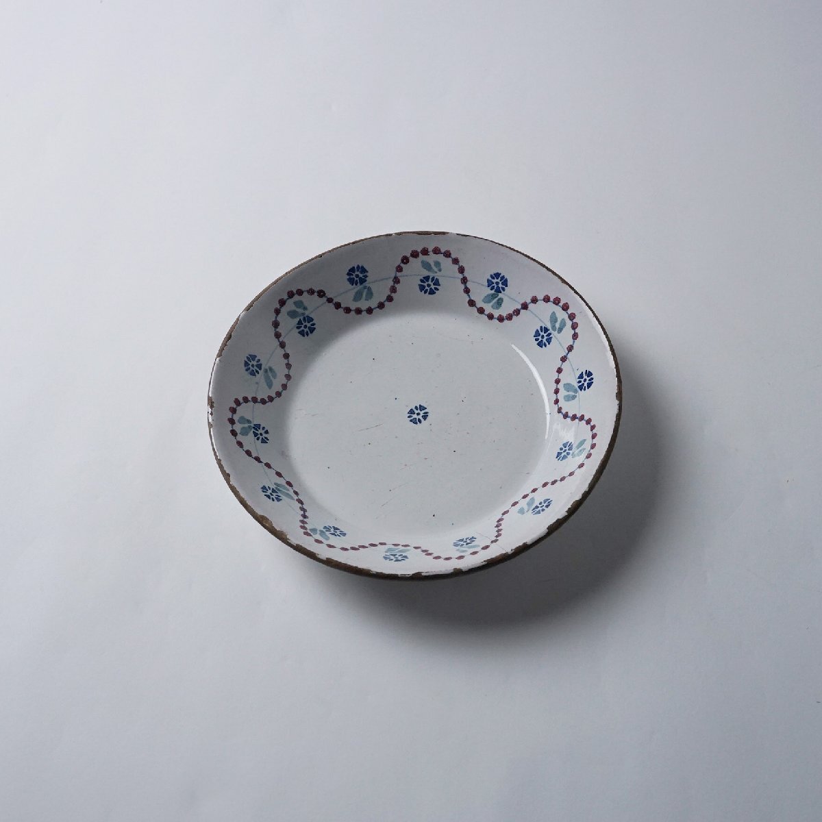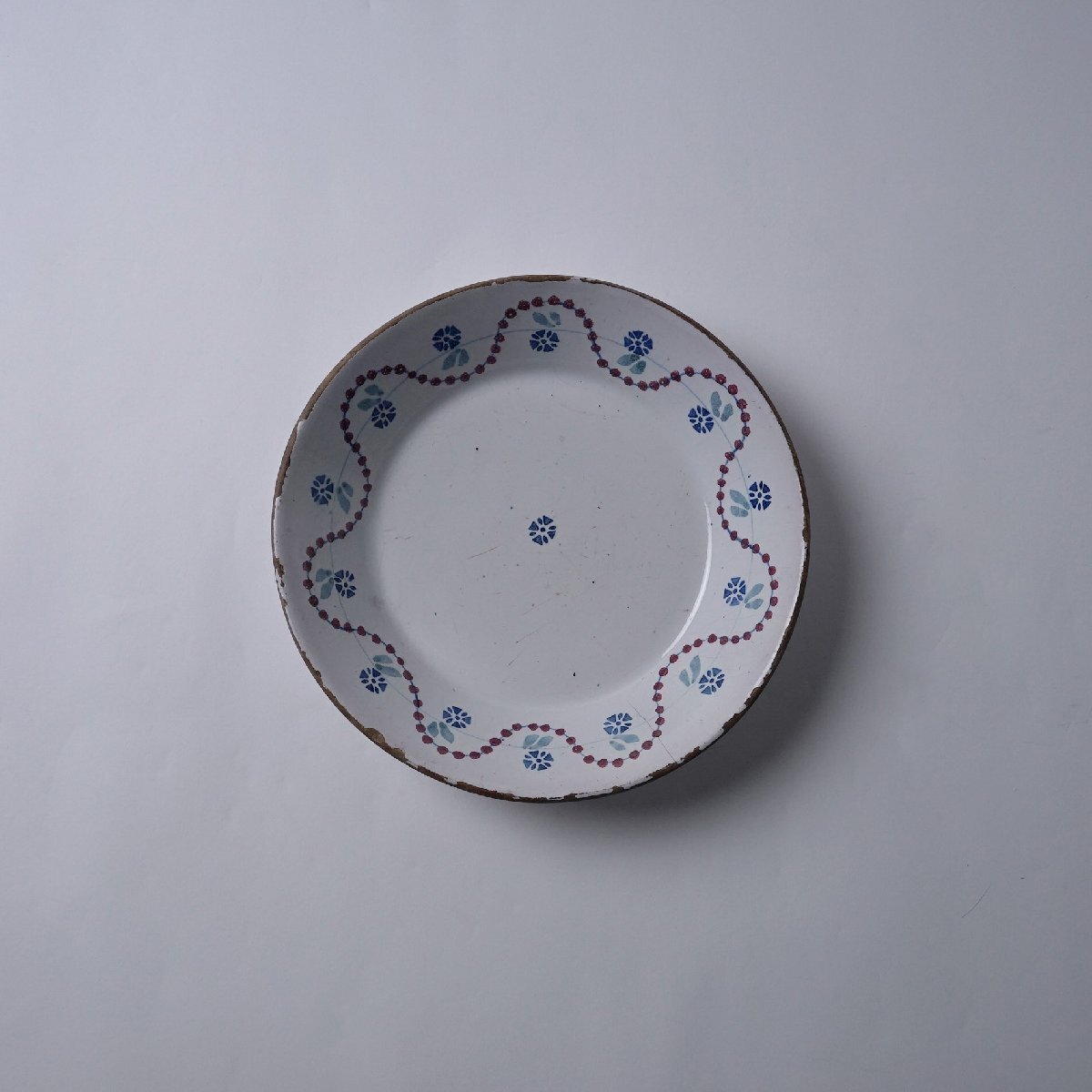 フランス アンティーク ムスティエ プレート 皿 20.5cm 白 ファイアンスフィーヌ[E975] 收藏