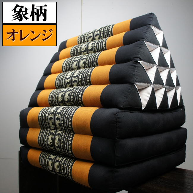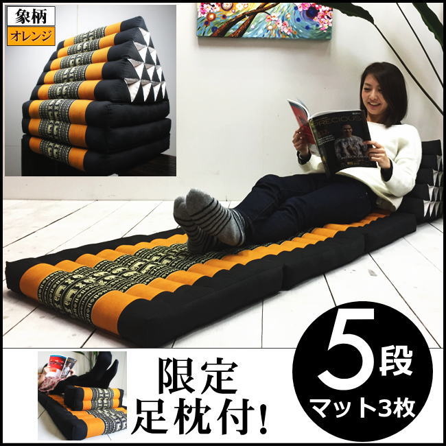 三角枕 タイ 三角 クッション 枕 5段 マット3枚 象柄 オレンジ 座椅子 昼寝マット ごろ寝マット アジアン 收藏