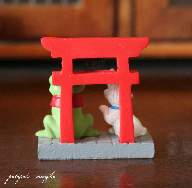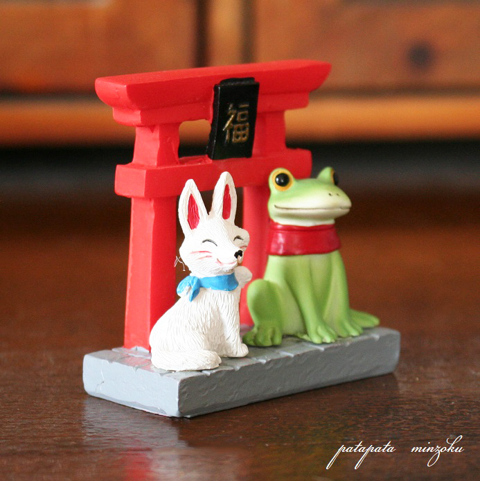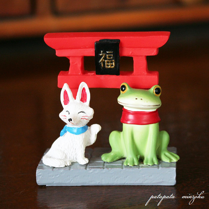 Copeau コポー お稲荷キツネとカエル 置物 ダイカイ オブジェ カエル きつね キツネ 神社 鳥居 パタミン 雑貨 收藏
