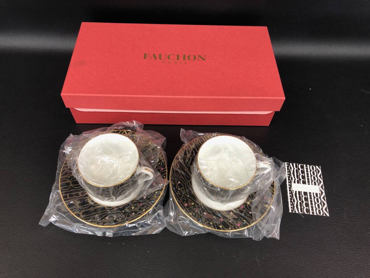 未使用 ペア ティーセット FAUCHON フォーション ドッド&ロゴ カップ&ソーサー 2客 食器 250711-10 收藏
