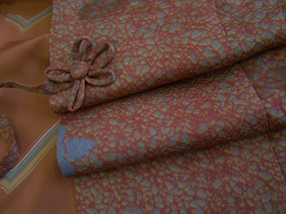 時代屋 大特価 美品 裄69cm ロング寸 縮緬地 道中着 正絹 仕立上り 162cm~168cm Cs1378 收藏