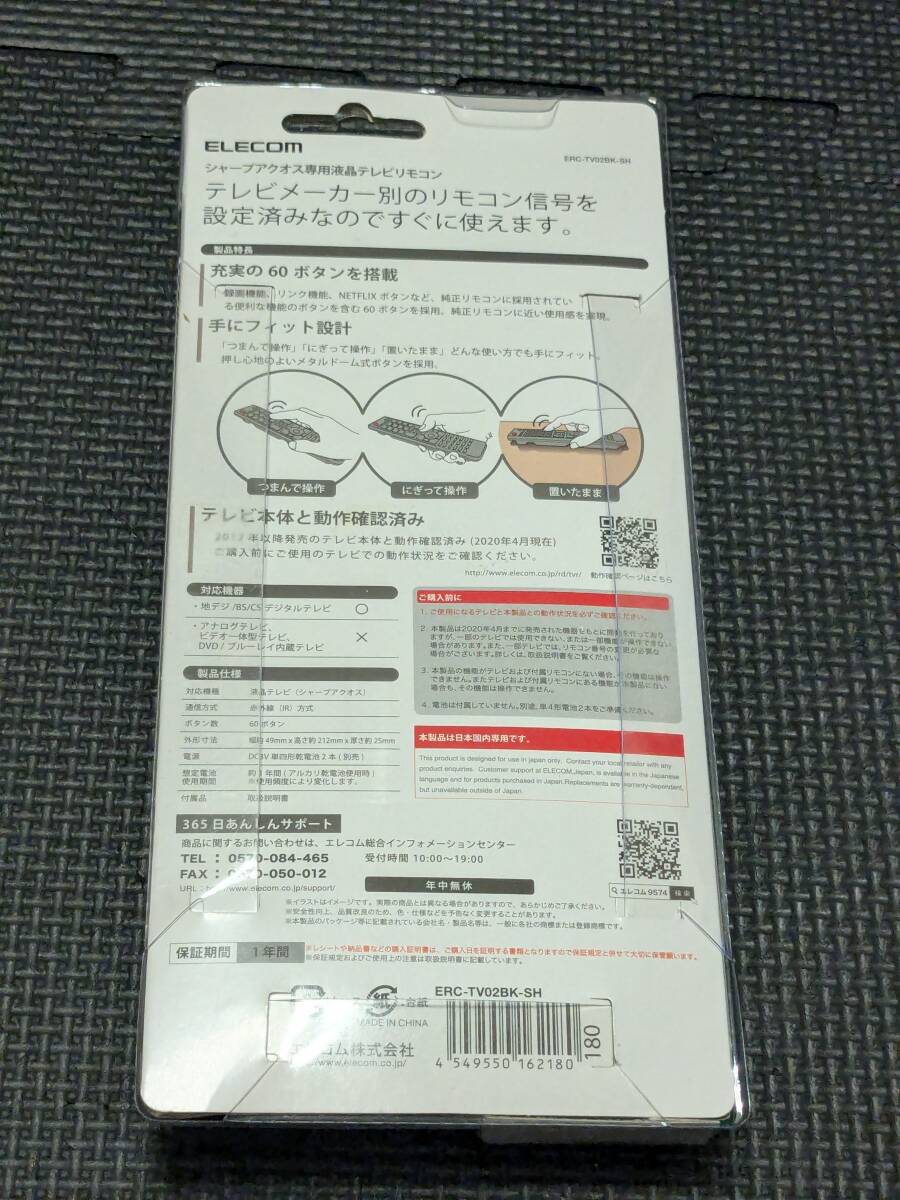 ◎0709u1249 エレコム テレビリモコン 12メーカー対応 Sサイズ ブラック ERC-TV01SBK-MU 收藏
