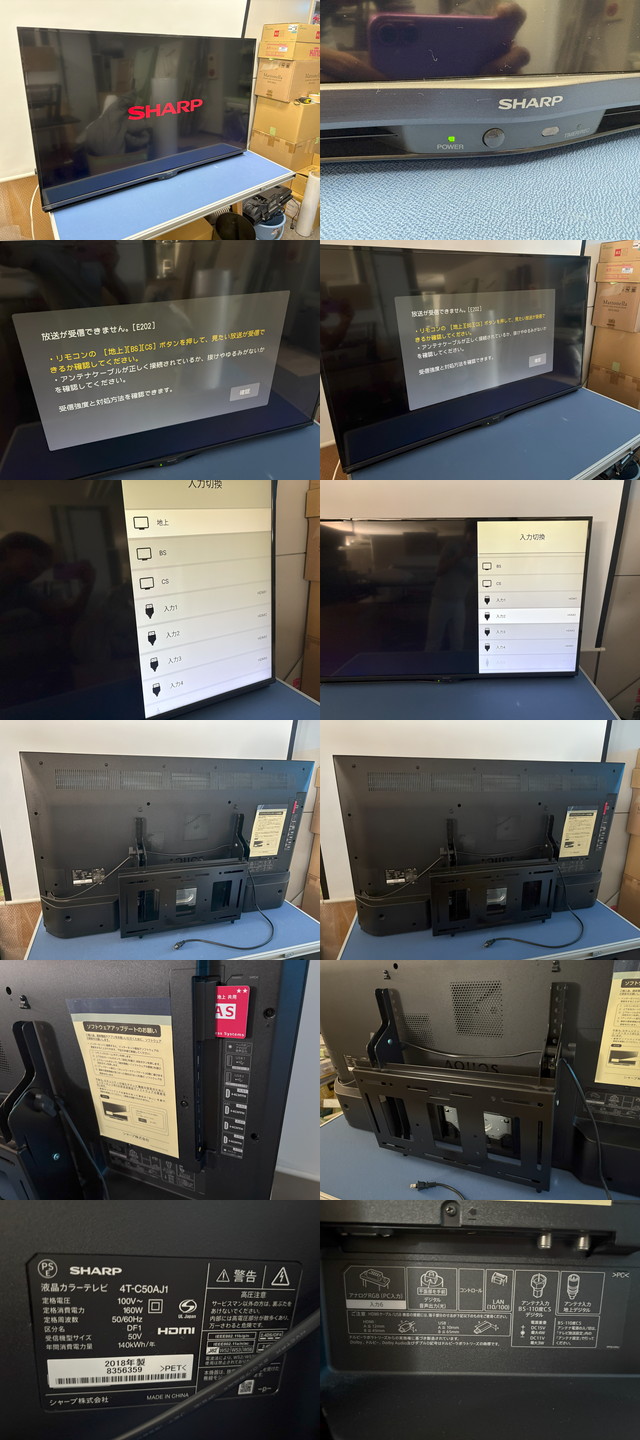 【引き取り限定】28930■SHARP AQUOS 4T-C50AJ1 壁掛け50型 壁掛け金具付き 液晶TV リモコンなし 2018製■展示品 收藏