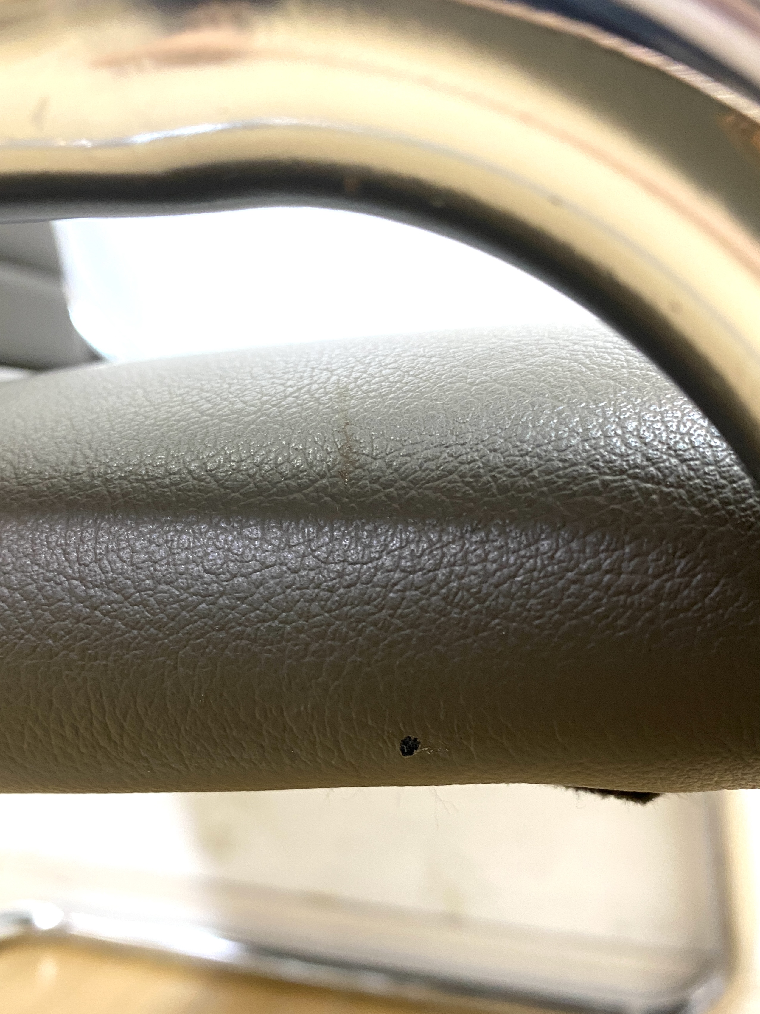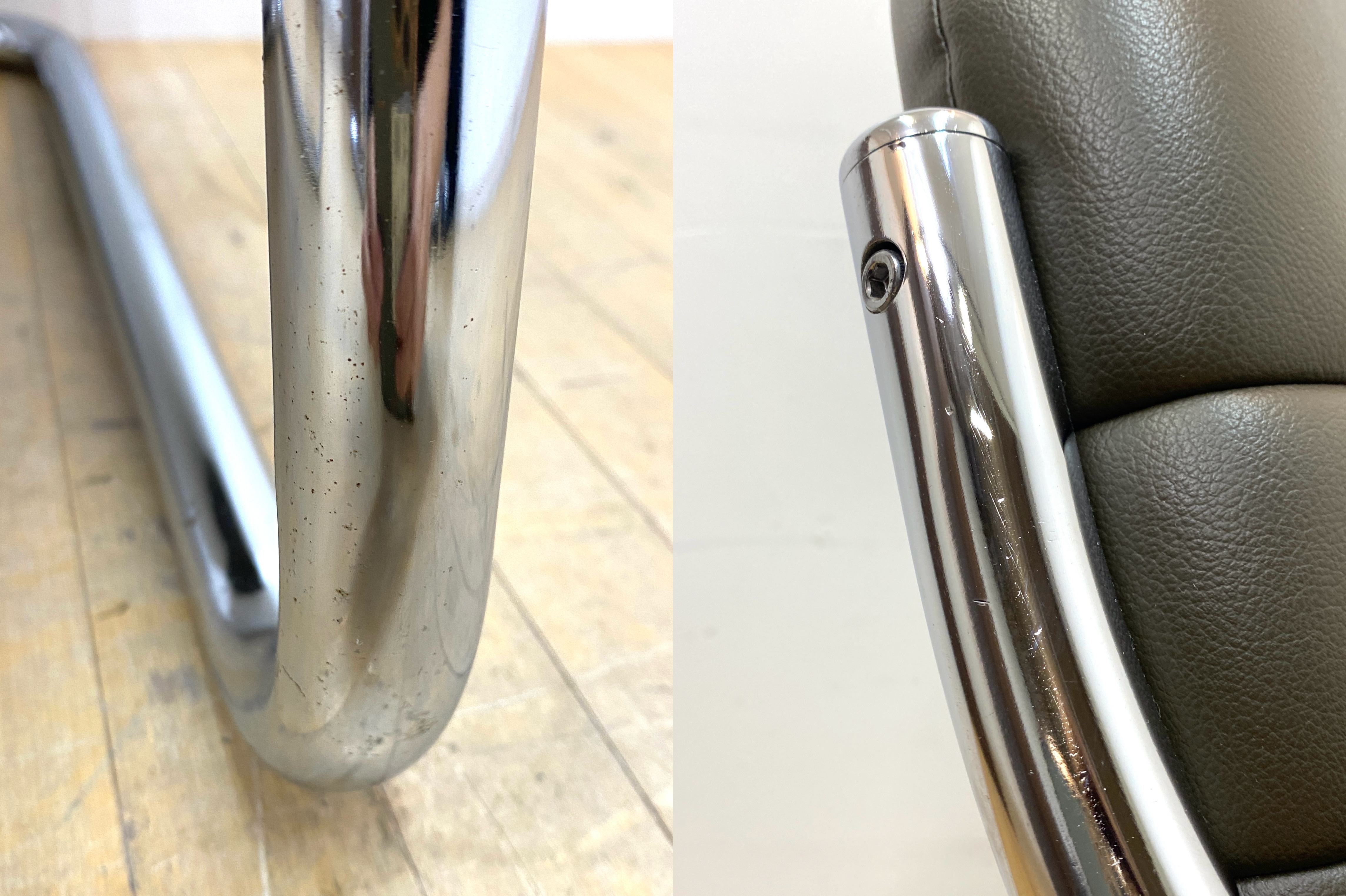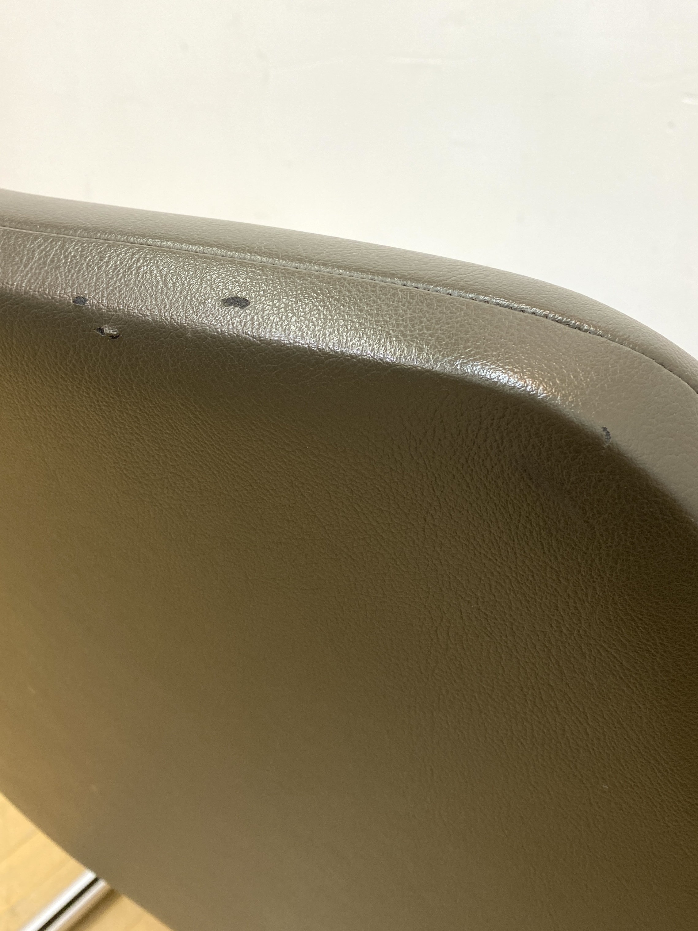 こちらはビンテージのカンチレバーチェアです。 中古品です。 金属フレームにカーキブラウンのビニールレザーの座面を合わせた、 ビンテージのカンチレバーチェアのご紹介です。 背もたれから脚に掛けて、一本のフレームで作られたカンチレバータイプで、 すっきりとしたシルエットがモダンでスタイリッシュなデザイン。 カンチレバー構造による独特の弾力が快適な座り心地です。 ビニールレザーを使用しているため手入れも簡単で、ダイニングチェアとしてもおすすめです。 インダストリアルやミッドセンチュリーといったインテリアとも高相性で、 スタイリッシュな空間づくりにぴったりです。今回、同デザインのチェアが合わせて3脚入荷しています。 ダイニングスペースで使ったり、並べてベンチのように配置しても良さそうです。 セットで揃えていただくことで、空間にまとまりが出るのでおすすめです。 順次出品中ですので、こちらもぜひご検討ください(’25/9/10現在)。 【コンディションについて】 フレーム全体に薄いキズやくすみがあります。背もたれ内側に跡が付いています。 画像では分かりやすいように光を調整していますが、大きく目立つような凹みではありません。 このほか、背面に小さく破れている部分があります。 使用感はありますが、程よく使い込まれた感じが心地良いビンテージらしい1脚となっています。 他詳細については下記画像も併せてご参照ください。 ![]() 【背もたれの凹み】 ![]() ![]() ![]() ![]() この機会に是非ご検討ください。皆様のご入札をお待ちしております! 再良市場の他のお品物はこちらから!