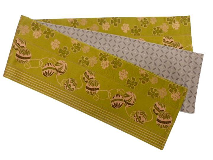 日本製 半幅帯 半巾 細帯 浴衣帯 四寸帯 結び帯 着付け 練習 帯 リバーシブル四寸帯 カラシ 手毬 肌色 七宝 No.50 收藏