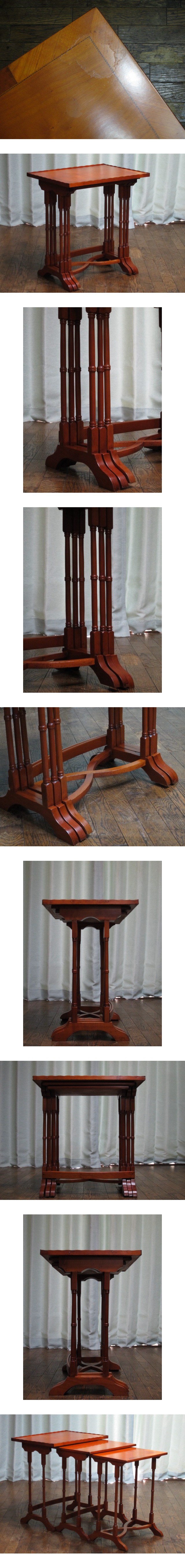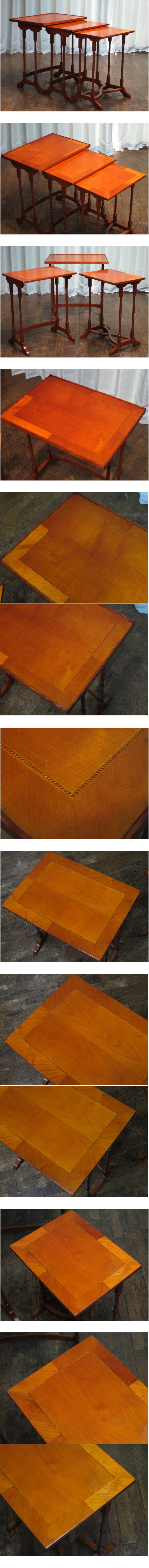 英国 イギリス ヴィンテージ ストリンギング 線象嵌 インレイ 3つ組 ネストテーブル/サイドテーブル/西洋/アンティーク/クラシック 收藏