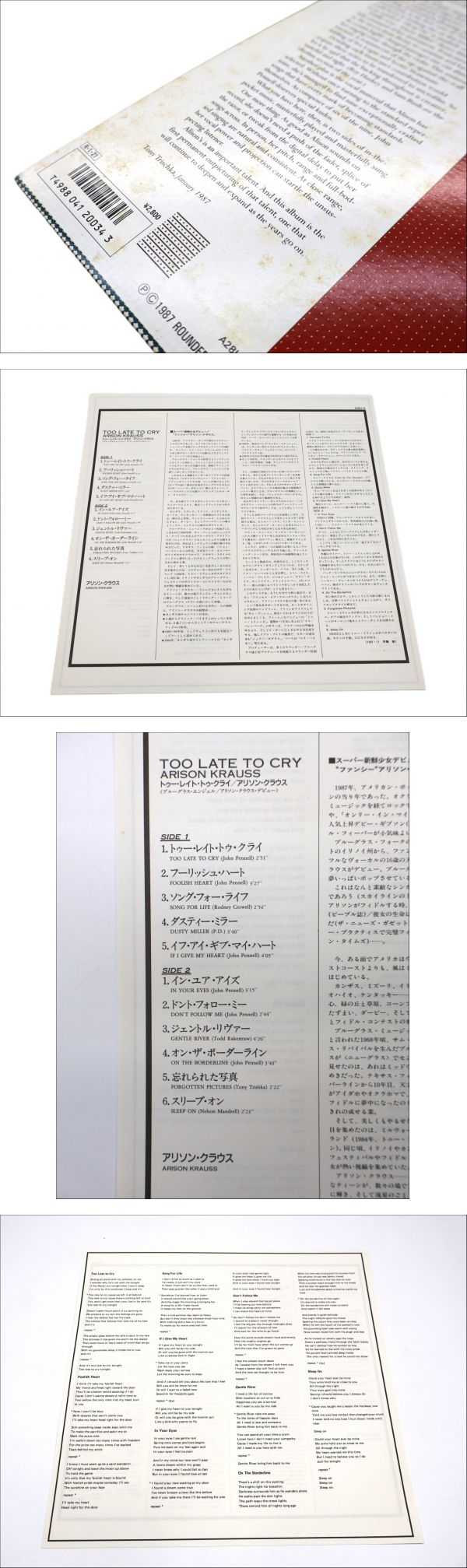 ★中1731 帯付 ALISON KRAUSS アリソン・クラウス/Too Late to Cry トゥー・レイト・トゥ・クライ レコード LP コレクター放出品 32509081 收藏