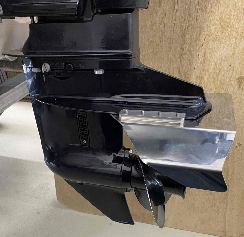 | 1.プロペラの回転時に上後方に舞い上がる乱流を抑制し推力を高める。 2.船首が上がるのを防ぎ前方視界の改善 3.ウイングレット(スタビライザー両端のフィン)で翼端渦の軽減より推進効率アップ 4.プレーニング、MAXスピードの改善 5.プロペラの保護 6.頑丈なステンレス製で塩害にも強い 7.ステンレス製で強度が有るため非常に薄く出来ており装着抵抗が少ない 8.船外機は無加工で簡単取付 9.アノードもそのままの位置で機能 ※サイズ: 幅290×長さ182×高さ59(mm) ※材 質: ステンレス2.0(mm)・・ ・・・鉄板4.0mm相当の強度 |