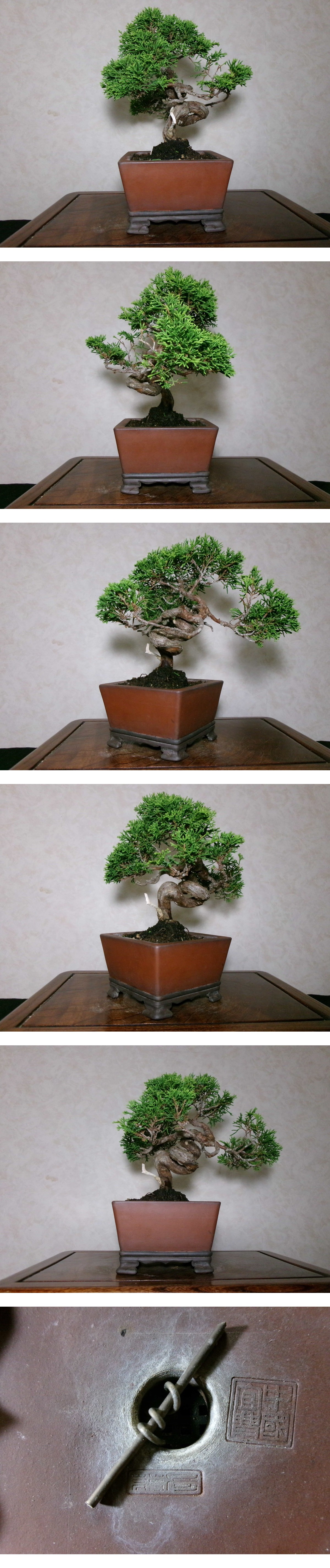 希少 古木感上々 展示にも 糸魚川真柏 風情ある文人調の模様木 持込の貴風盆栽 樹高24センチ(地際から17㎝) 鉢は中国宜興 在銘 | |||||||||||