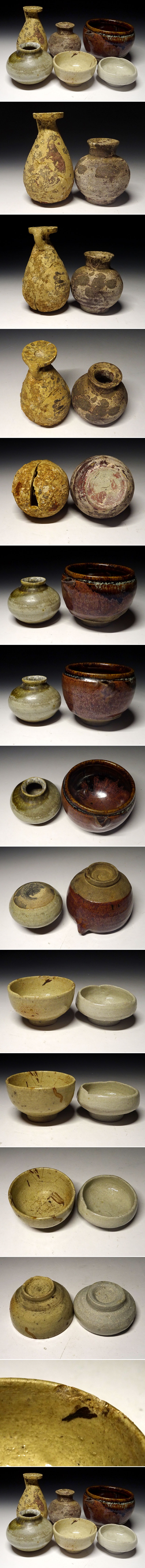 中古品 経年の汚れ、スレ、ホツ、左の小壷底割れ |
