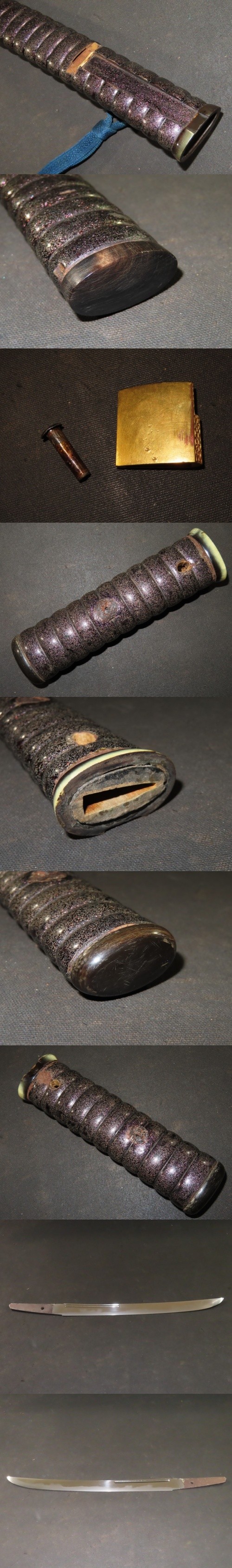 平造脇差 無銘 合口拵 江戸 54.5×刀身34.6×反0.8×元重3×元重0.6x先重0.5cm 1.03㎏ 收藏