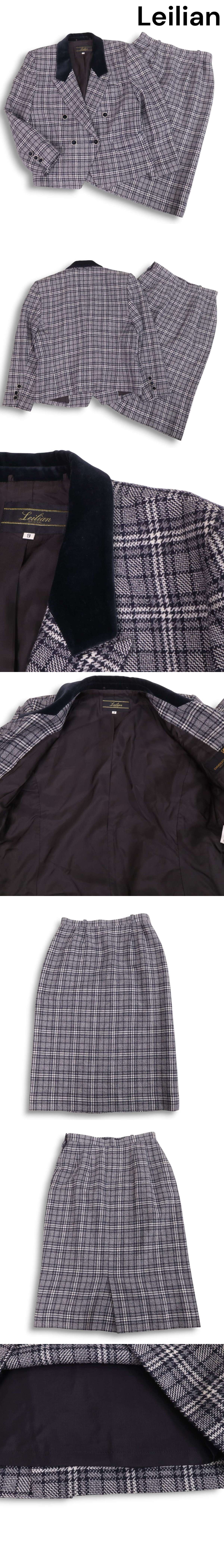 Leilian レリアン 秋冬 EMMERICH&EGER ウール ツイード グレンチェック ジャケット スカート セットアップ Sz.9 レディース 收藏