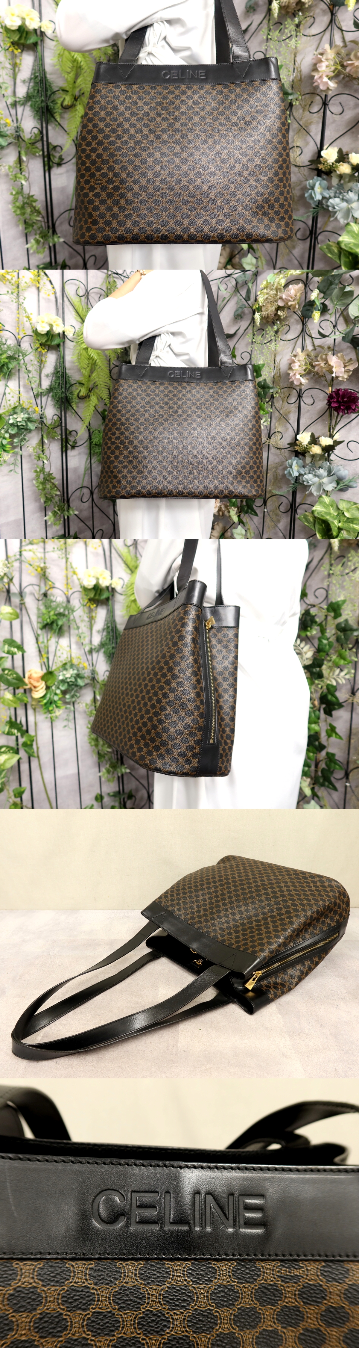 ●超美品●CELINE セリーヌ●マカダム●ロゴ型押し●PVC カーフ レザー 本革●トート バッグ●黒 ブラウン●G金具●A4 書類 収納●Js60878 收藏