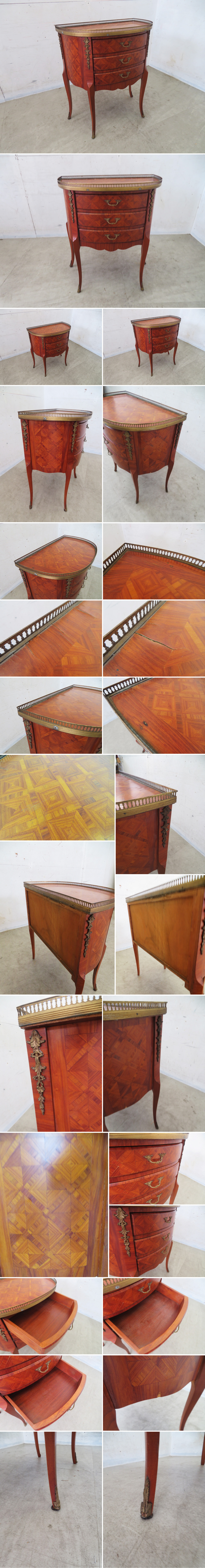■P079■フレンチアンティーク■キングウッド■クラシックデザイン■ハーフムーン型チェスト■3段■収納家具■高級■ 收藏