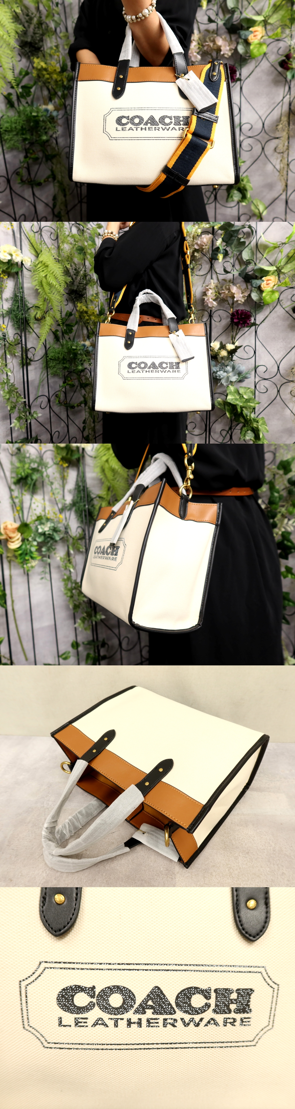 ●未使用 保管品●コーチ●フィールドトート●89488●キャンバス カーフ レザー 本革●2way ハンド バッグ●エクリュ 茶 黒●B5●Js60806 收藏