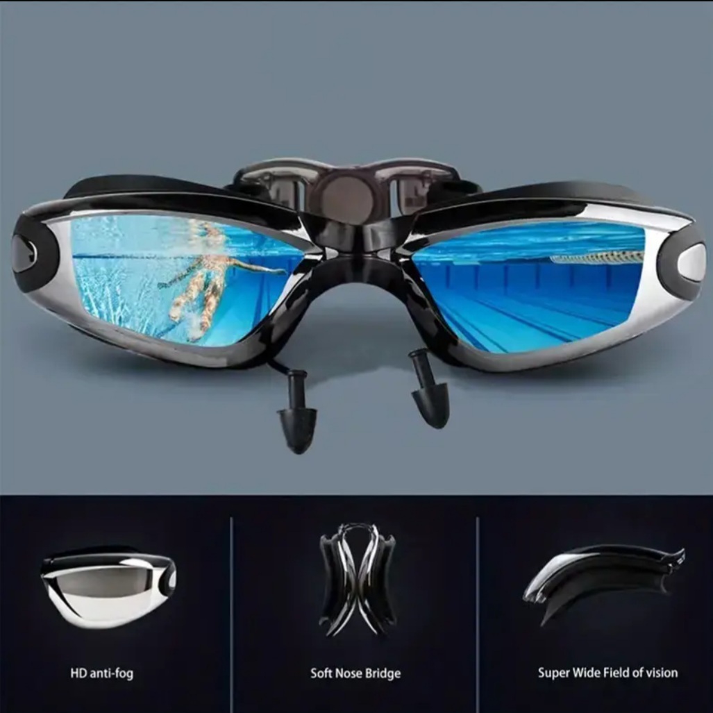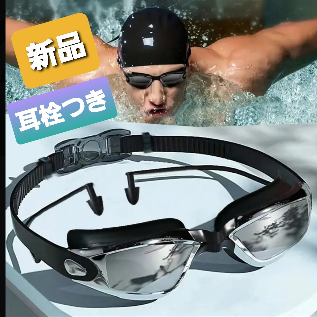 p2シルバー★新品 送料無料★スイミングゴーグル 耳栓一体型 UVカット&防曇加工 大人 フリーサイズ 水中メガネ 水眼 曇り止め ミラー 收藏