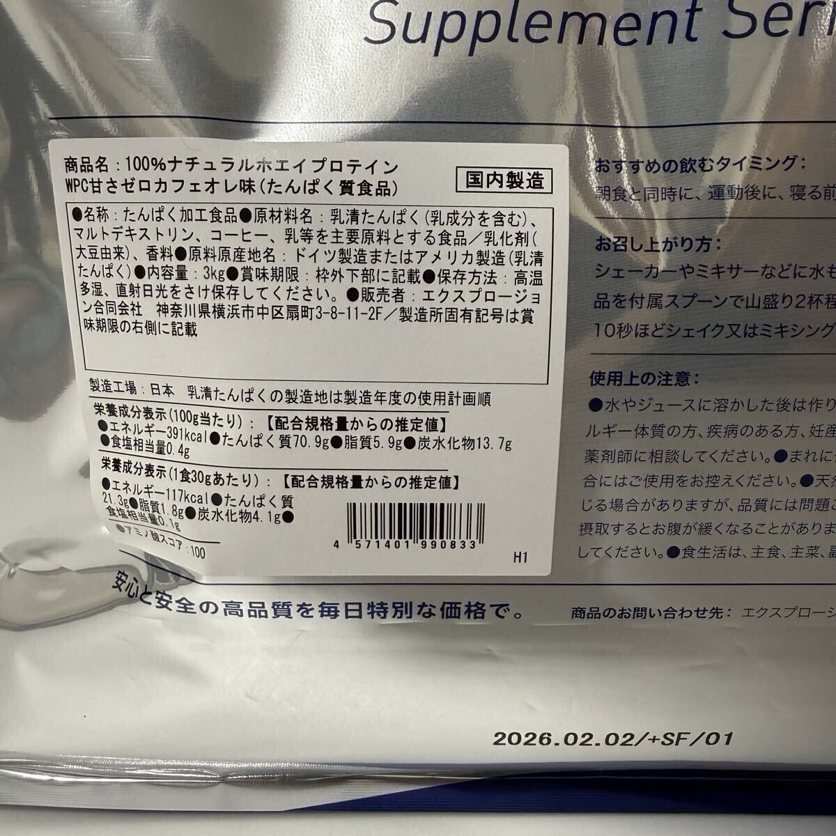 エクスプロージョン 3kg 100% ナチュラルホエイプロテイン WPC 甘さゼロカフェオレ味 たんぱく質食品 收藏