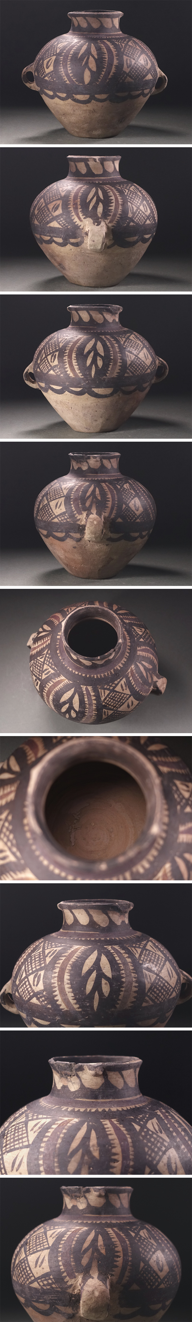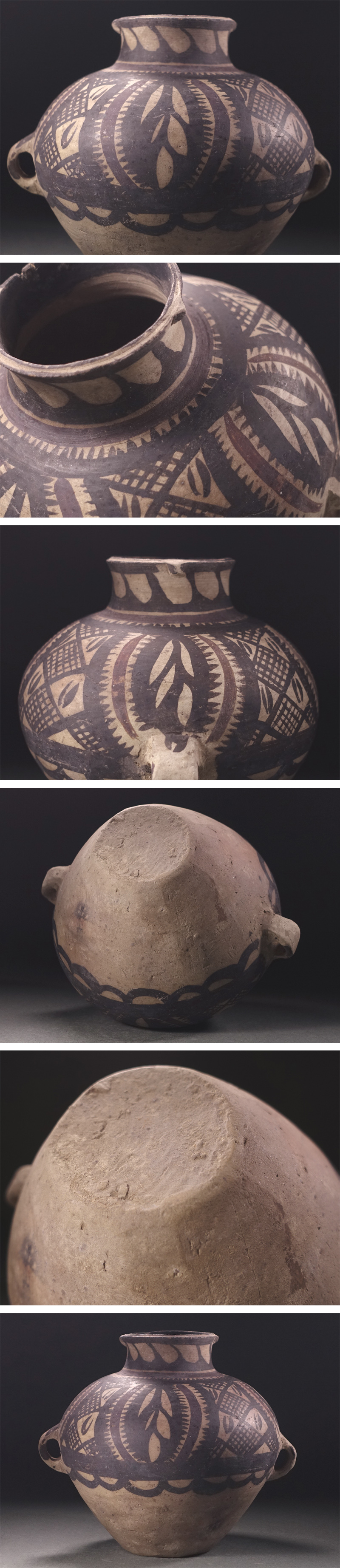 ∇花∇紀元前2300~2000年頃先史時代 仰韶文化遺物 馬家窯文化馬廠期 アンダーソン彩文土器 彩陶土器 赤黒彩幾何文双耳壷 C 收藏