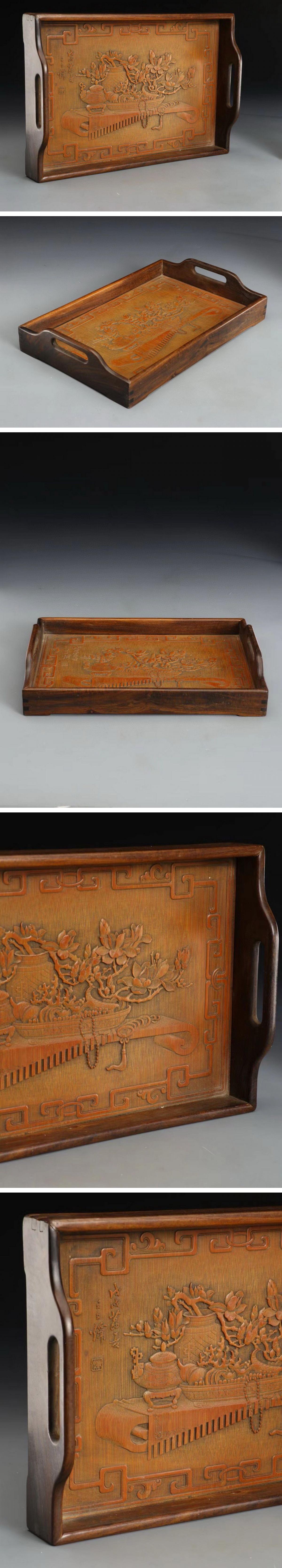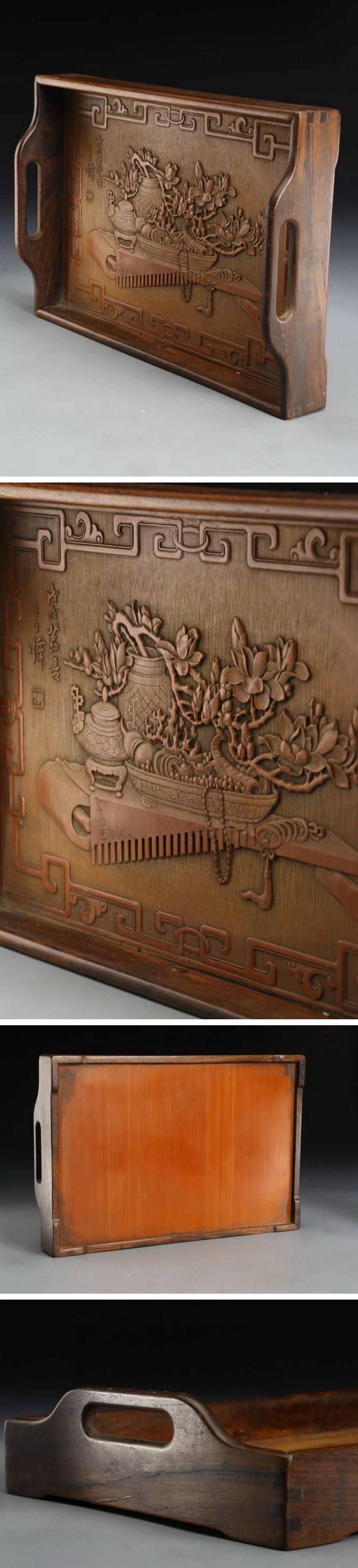 【清】某有名オークション購入 清時代 竹彫り 山水紋茶盤 材質保証 当時物保証 古置物 古擺件 古美術 時代コレクション7L9-ON 收藏