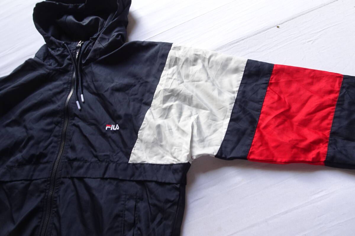 FILA/フィラ/FL-9A26001WJ/ジャンパー/アウター/ナイロン系ポリエステル/裏起毛/前ジップアップ/白赤切替/紺/ネイビー/Lサイズ(10/17R7) 收藏