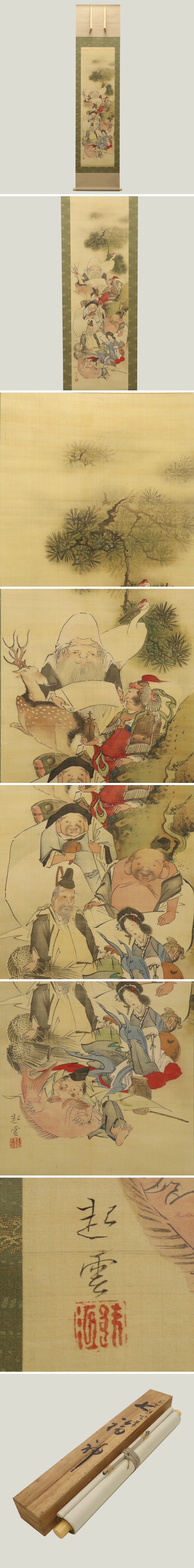 真作保証 岡本起雲 「七福神図」 絹本 箱 掛軸 書画 骨董品 古美術品 1512sdzK 收藏
