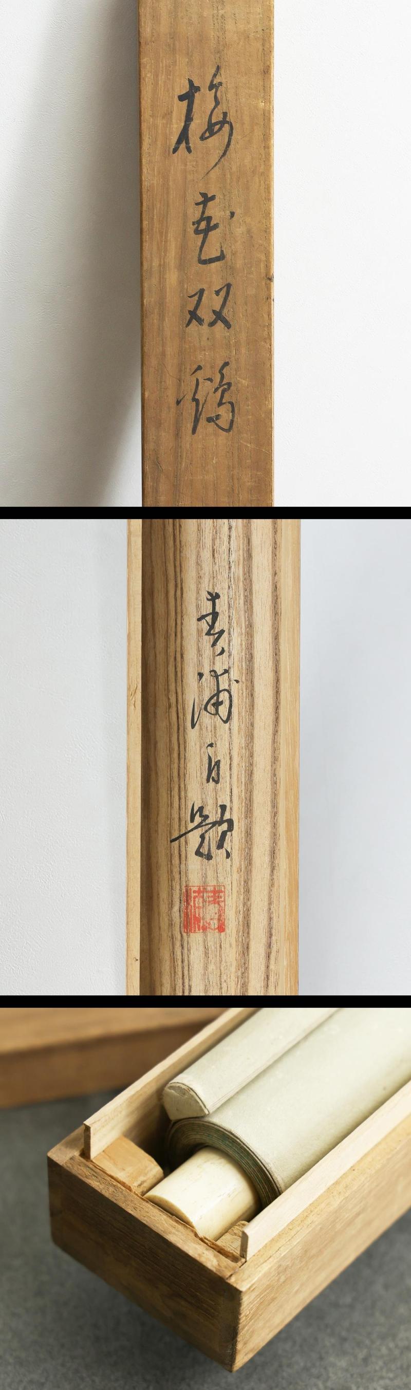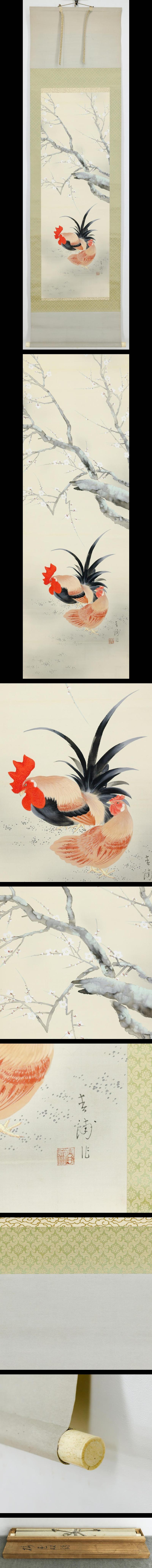 【WISH】在銘:春浦「梅花双鶏」日本画 掛軸 絹本 共箱 調和と繁栄を描く瑞鳥の図 #25090093 收藏