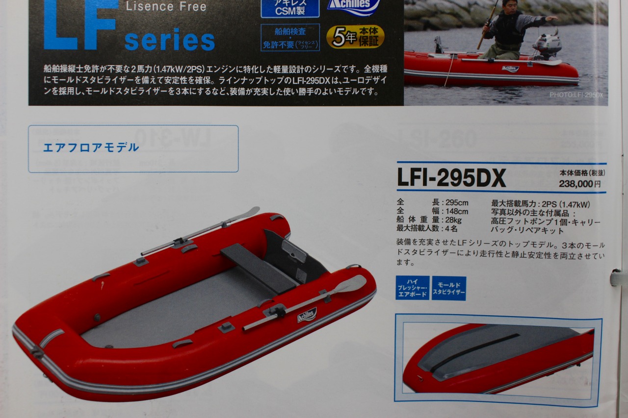 ◆製品名:アキレス LFI-295DX(CSM製エアフロアモデル)4人乗り 中古艇 +DXドーリー(ノンパンクタイヤ)セット ◆全長:295cm ◆全幅:148㎝ ◆チューブ径:39㎝ ◆気室数:2+1(チューブ本体×2、エアフロア) ◆床形式:高圧エアフロア ◆総重量(船体重量):35.5kg(28.5kg) ◆最大搭載人数:4名 ◆最大搭載馬力:1.47kw(2馬力) ◆製造番号:JP-ACH00219B707 ◆予備検査:無しモデルとなります。 ◆メーカー希望価格:ボート税込246750円/タイヤ+固定金具 税込55000円 画像参照下さい) ◆スペックについては、メーカーHP等参照下さい。 ※付属品:オール1P、腰掛板×1、ボート収納袋(綺麗なクラス)、DXドーリー(タイヤ)、アキレス2025カタログ×1。 (画像参照下さい。) 初期不良に関しては落札商品到着後1週間以内にご連絡ください。 それ以後につきましては基本的にお受けできませんので、ご注意ください。 また、オークションという性質上、アフターサービスはお受けできませんので、 その旨良くご理解の上、入札していただきますようお願いいたします。 (電話やメールでのサポートは可能ですので、不明点等何かあればご連絡下さい) ★こちらの出品商品はノークレームノーリターンでお願いします。 ★お問合せ先 フィッシュランド西桔梗店 TEL 0138-49-7979(お問合せ時間10:00~19:00) ※営業時間外他、何か質問等がありましたら、下記のアドレスまでお問合せ下さい。 (当店のアドレスとなります→ kikyou@fishland.co.jp) ★商品落札後のアフターにつきましては 基本的に当方ではお受けできませんのでご了承ください。 ★各地へのボート送料は画像内に記載してありますので 必ずご確認ください | |||||||||||||||||||||||||||||||