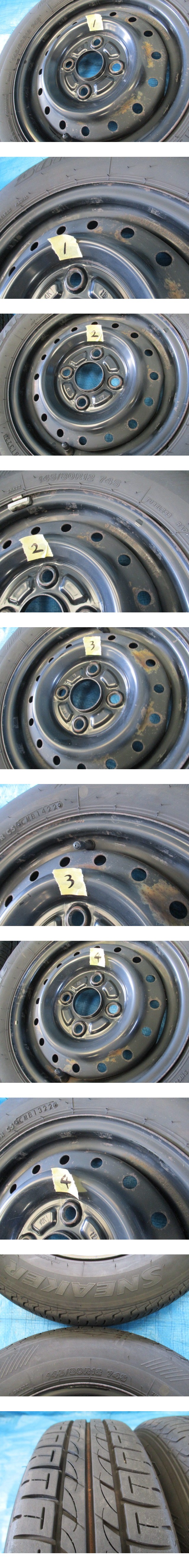 ※12インチ※4本●L250ミラ タイヤ付きスチールホイール●145/80R12●12×4.00B●ハブ径54mm●4H PCD100●22年 7~8分山タイヤ●ダイハツ 收藏