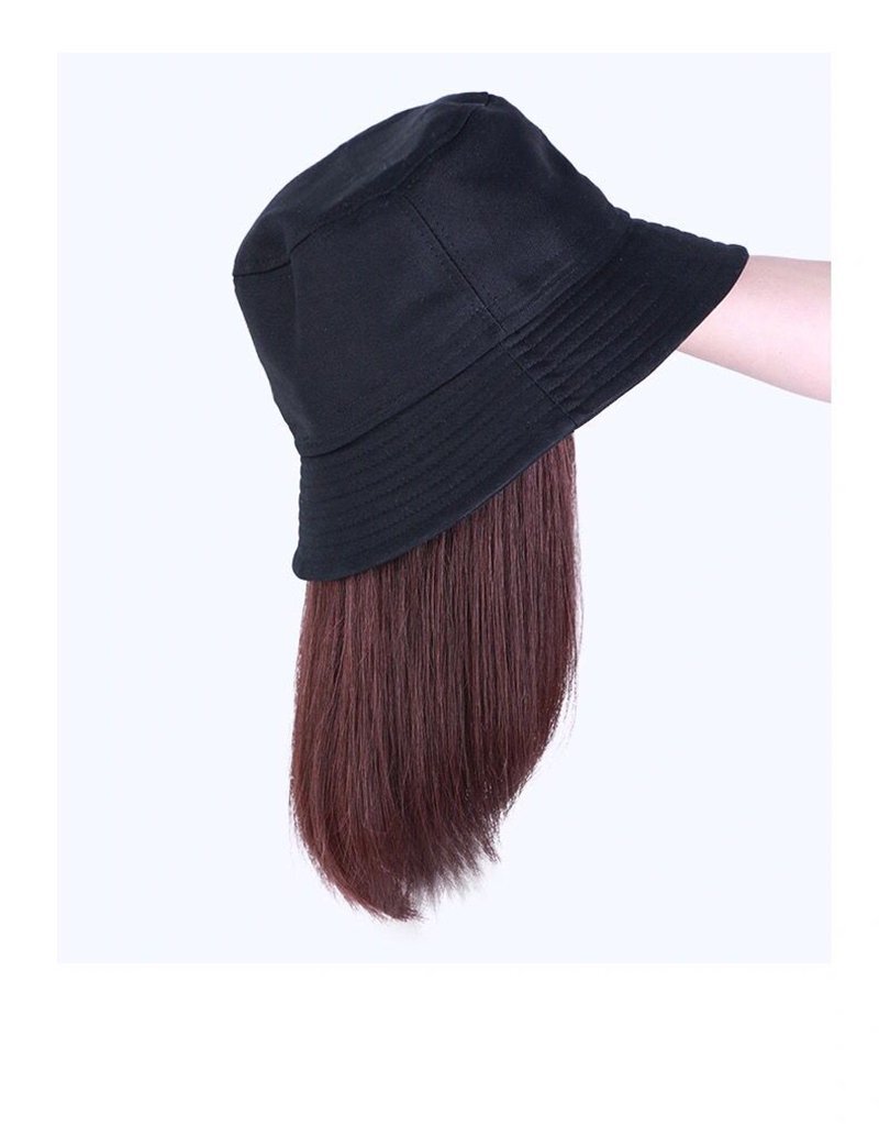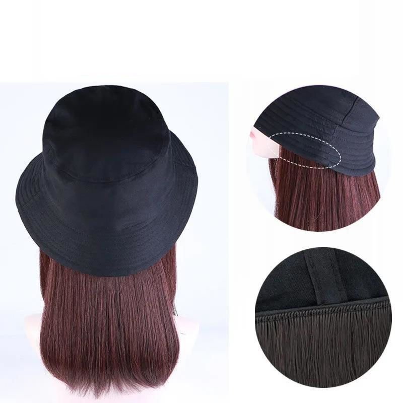 帽子付きウィッグ ボブ バケットハット 毛付き帽子 ストレート オールシーズン 收藏