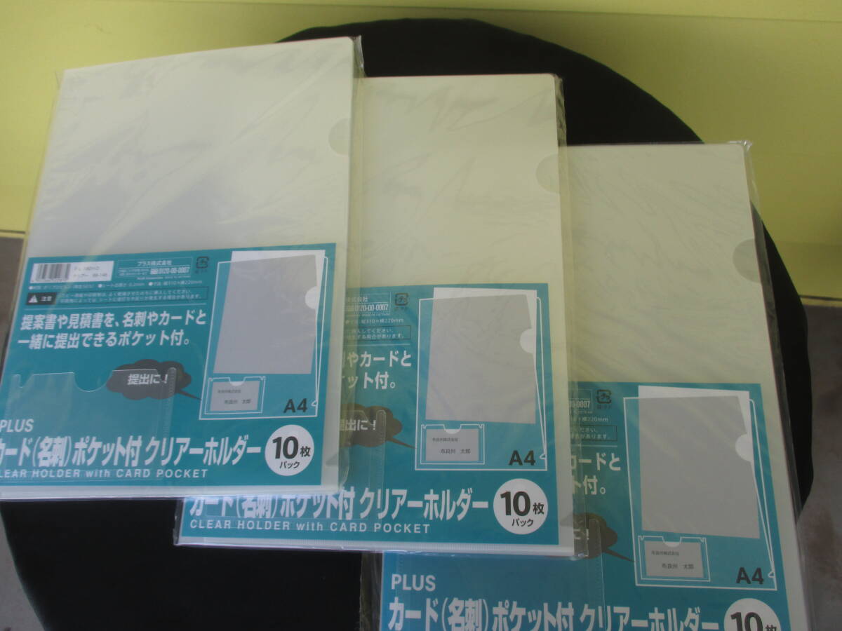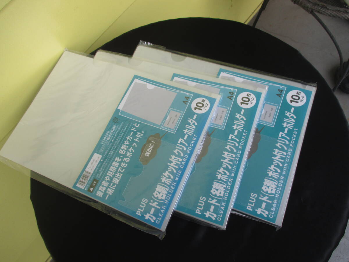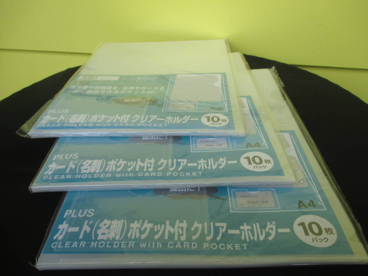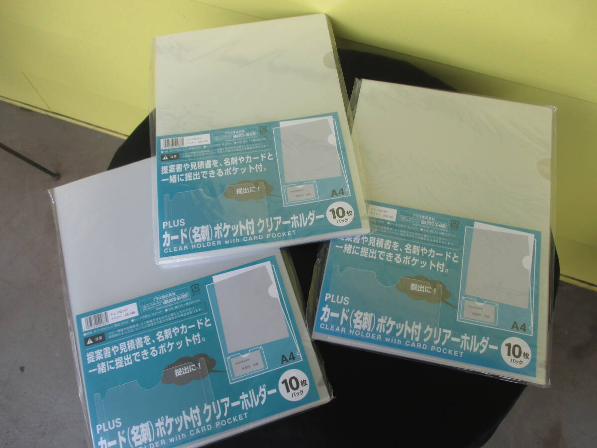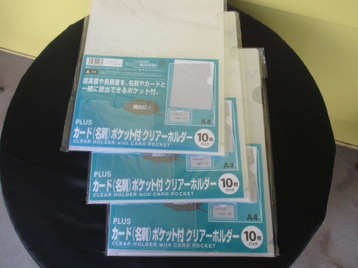 ★クリアホルダー 名刺ポケット付き 1パック(10枚) 3セット プラス A4サイズ 提案書 見積書 0.2㎜ 310×220㎜ 現状品 收藏