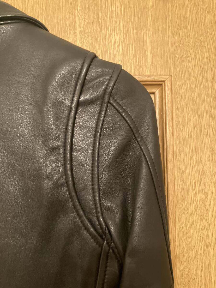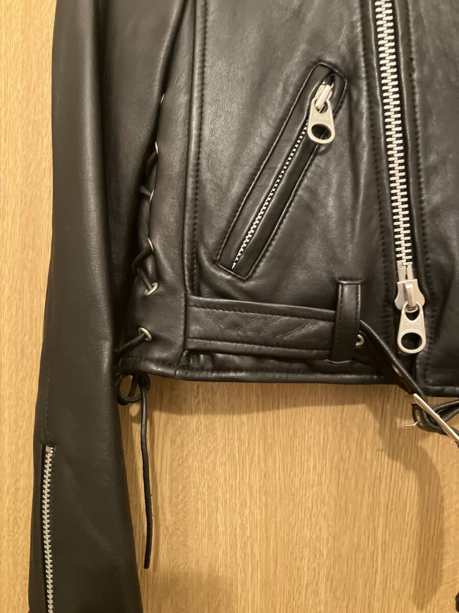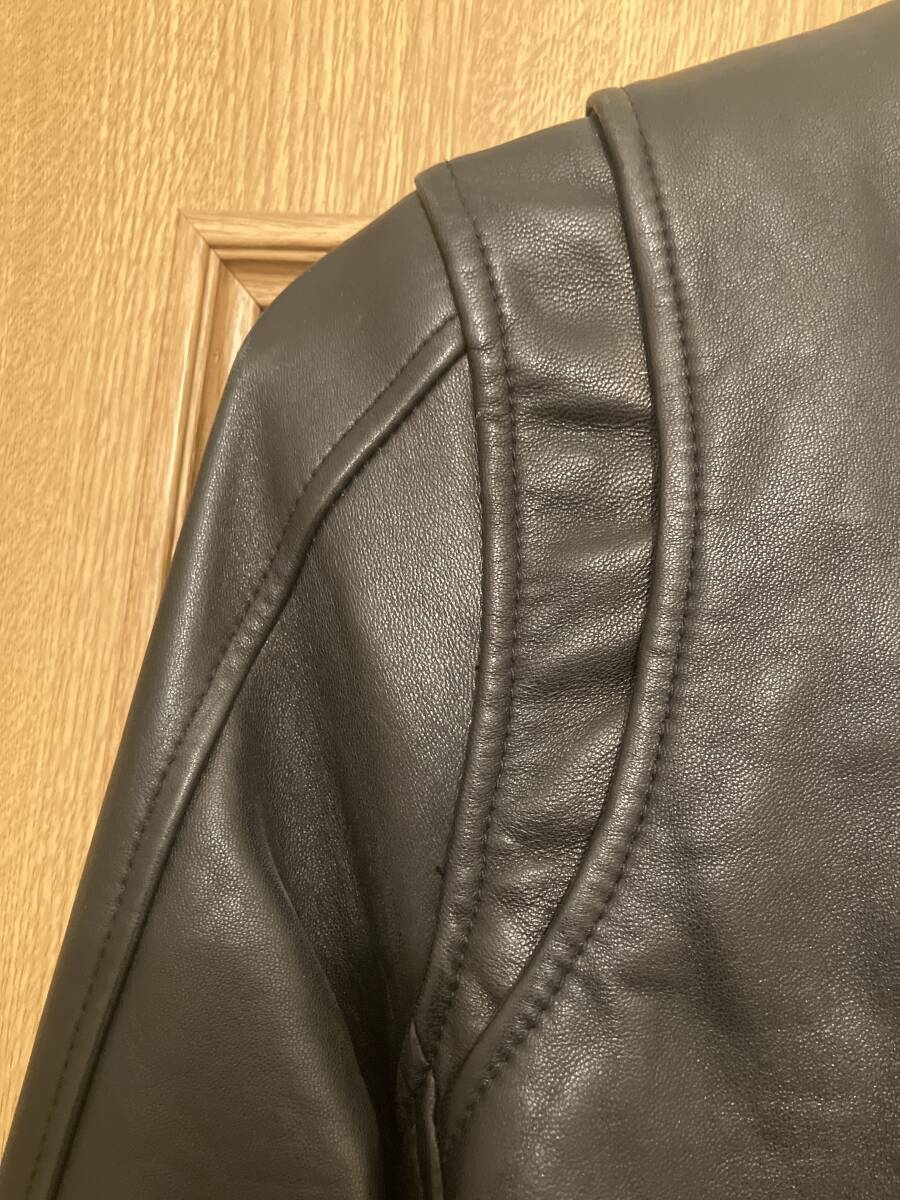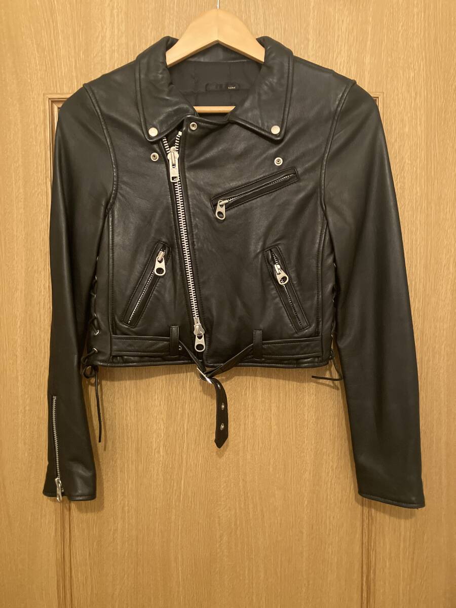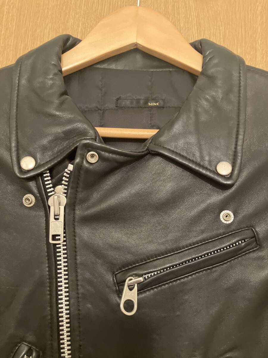 ナイン革ジャンライダースジャケットサイズ2黒色美USED品。画像で判断できる方で必ずノークレームノーリターンノーキャンセルが守れる方のみ入札お願いします。新規の方評価の低い方は入札はしないでください。クロネコヤマト着払い便での発送です。