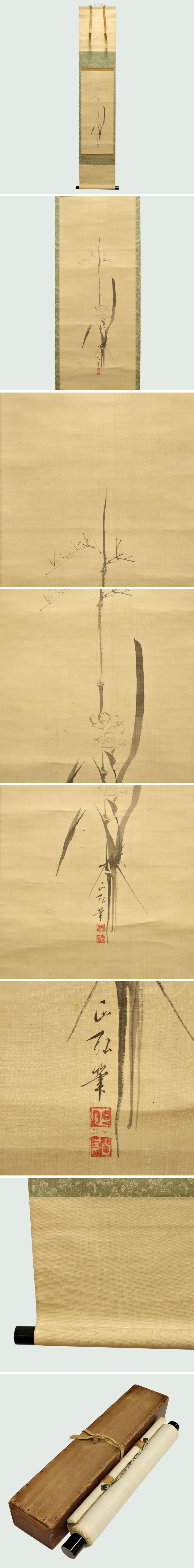 特別出品 大珍品 真作保証 江戸後期の大名 老中首座 備後国福山藩第7代藩主 阿部正弘公 水仙之図 絹本 箱 備後 掛軸 書画 骨董品 0131ocfyN 收藏