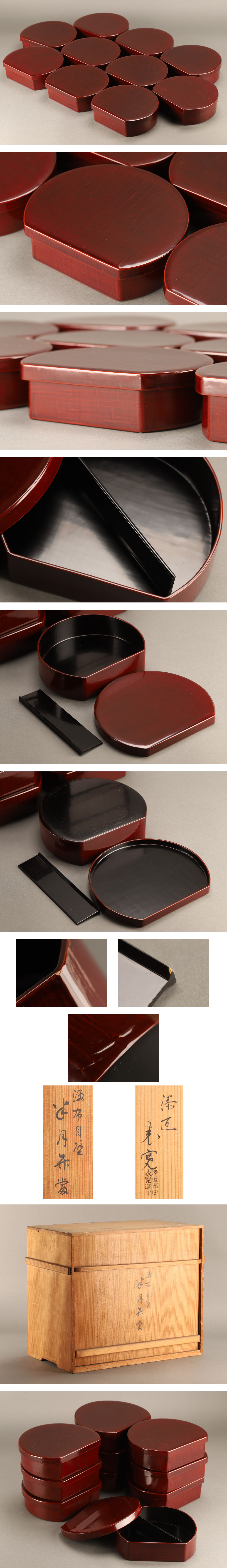 【流】会席茶道具 表寛 半月弁当十客 共箱 HD095
